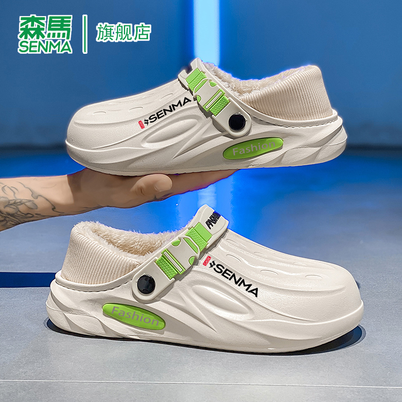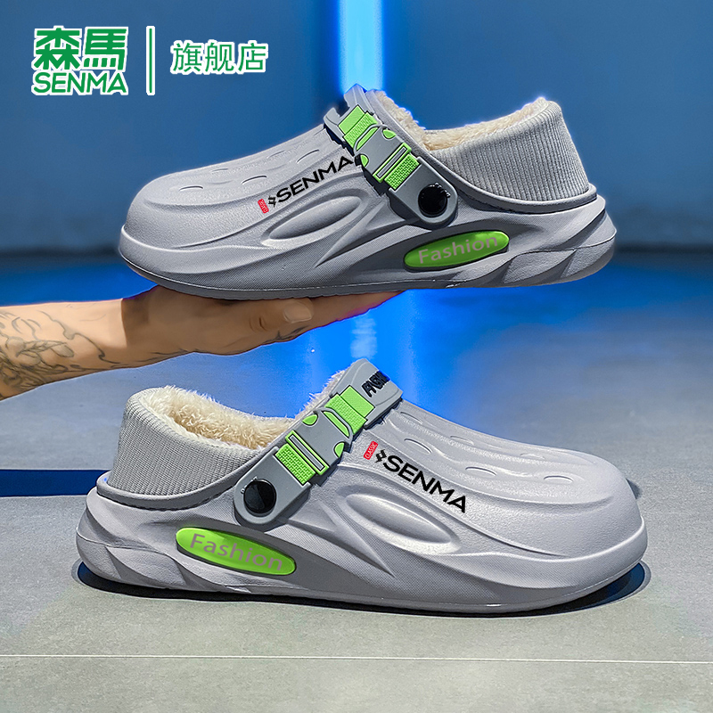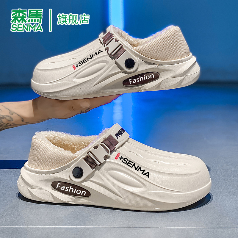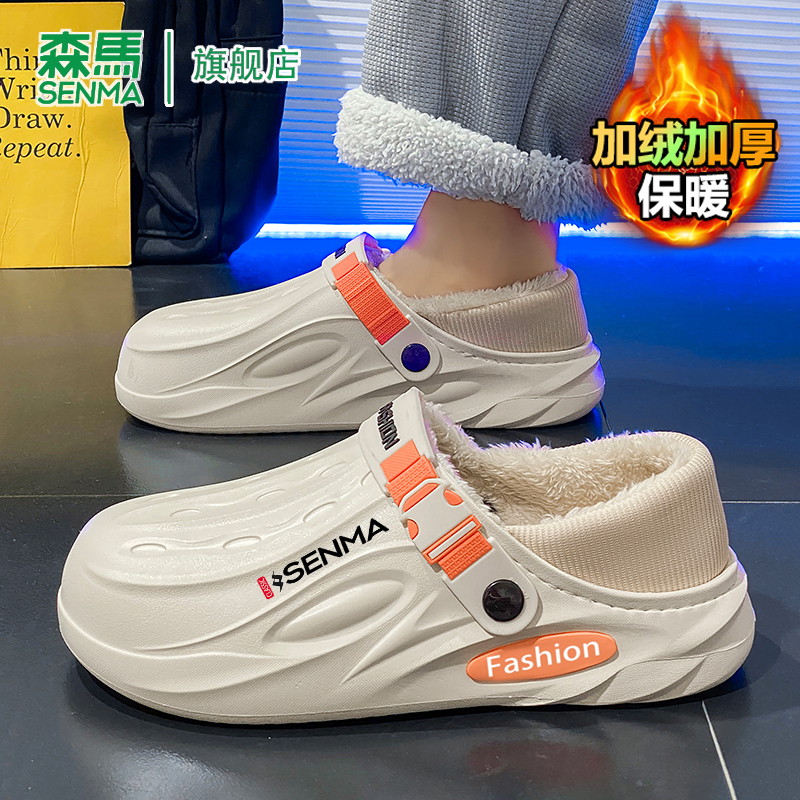 加绒加厚保暖舒适轻便防滑防水棉鞋 森马包头拖鞋 2025新款 冬季 男款