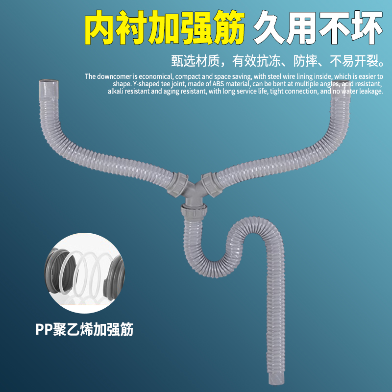 Y型下水道三通管排水管双洗衣机拖把水槽菜盆软管加长防臭塑料