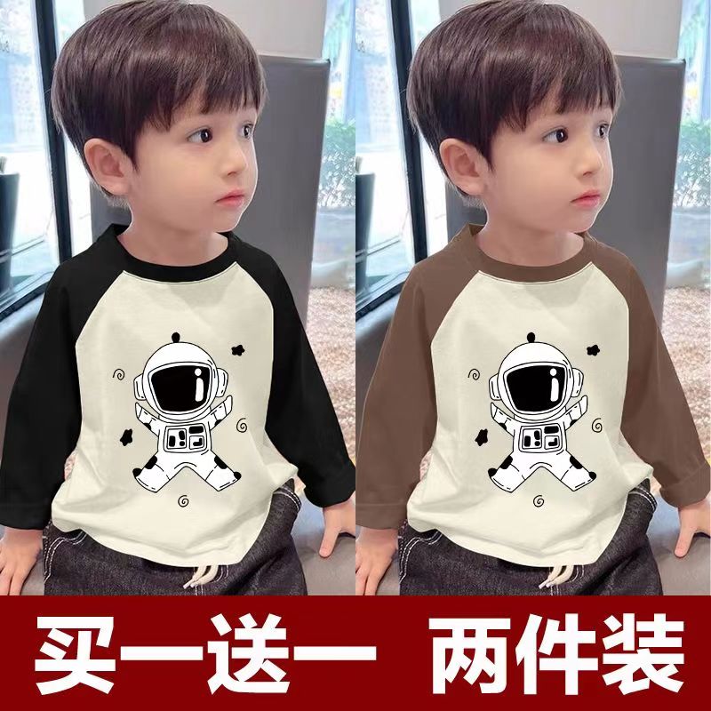 女孩洋气衣服全棉E t恤宝宝春秋男童上衣新款 儿童纯棉打底衫 长袖