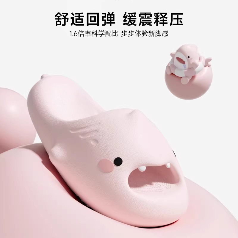 情侣小萌鲨EVA厚底鲨鱼拖鞋 女夏家居室内防滑增高可爱外穿凉拖鞋