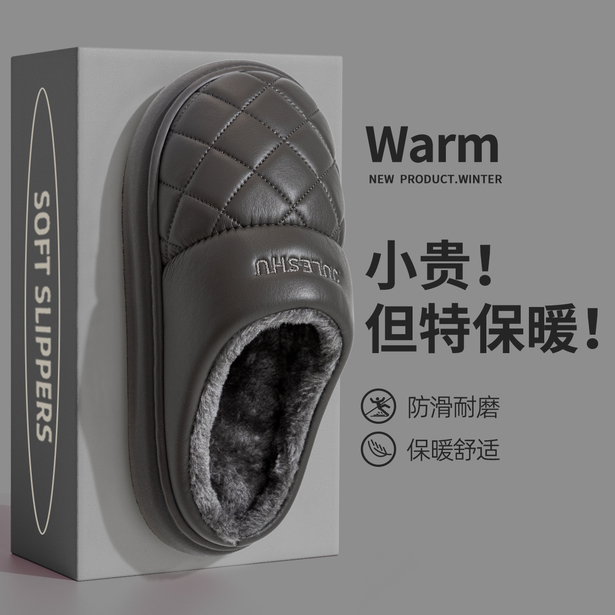室内家居防滑耐磨皮拖鞋 老人防水棉拖鞋 2025新款 冬季 女外穿冬 男士