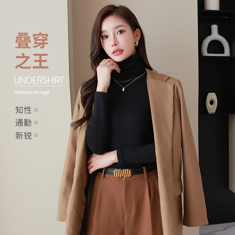 体恤 女半高领紧身纯棉上衣秋冬新款 AMANELATER内搭长袖 打底衫