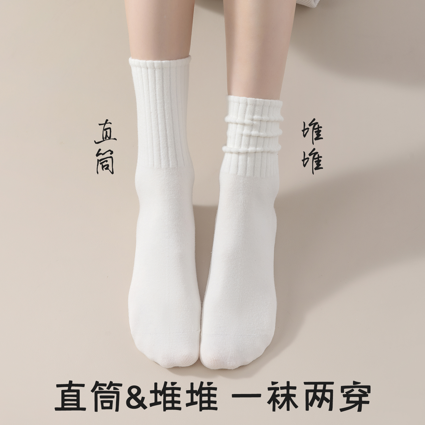 爆款 白色中筒袜纯棉无骨长袜2025新款 堆堆袜子女春秋冬季 搭勃肯鞋