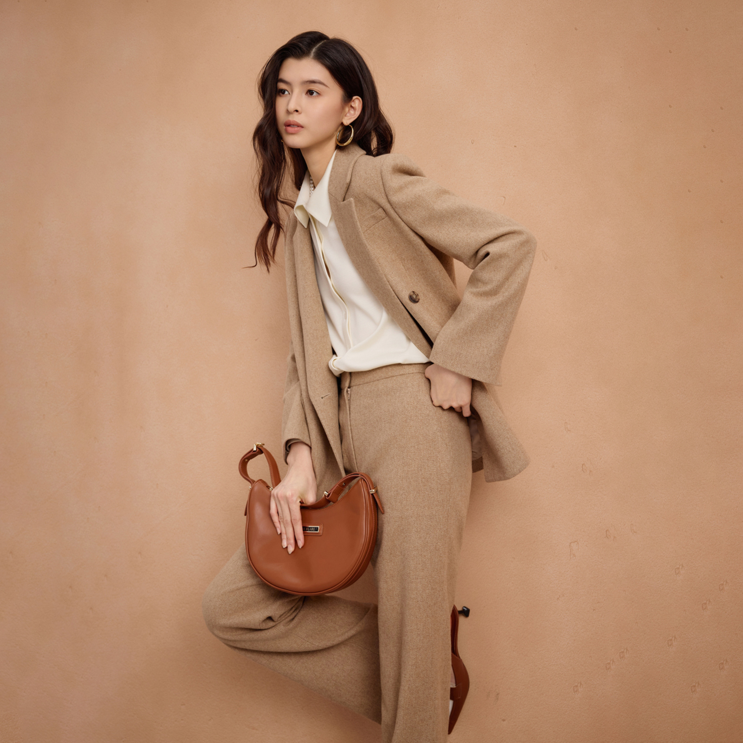洋气气质西装 女2025新款 外套连衣裙两件套 咖色小香风毛呢套装 时尚