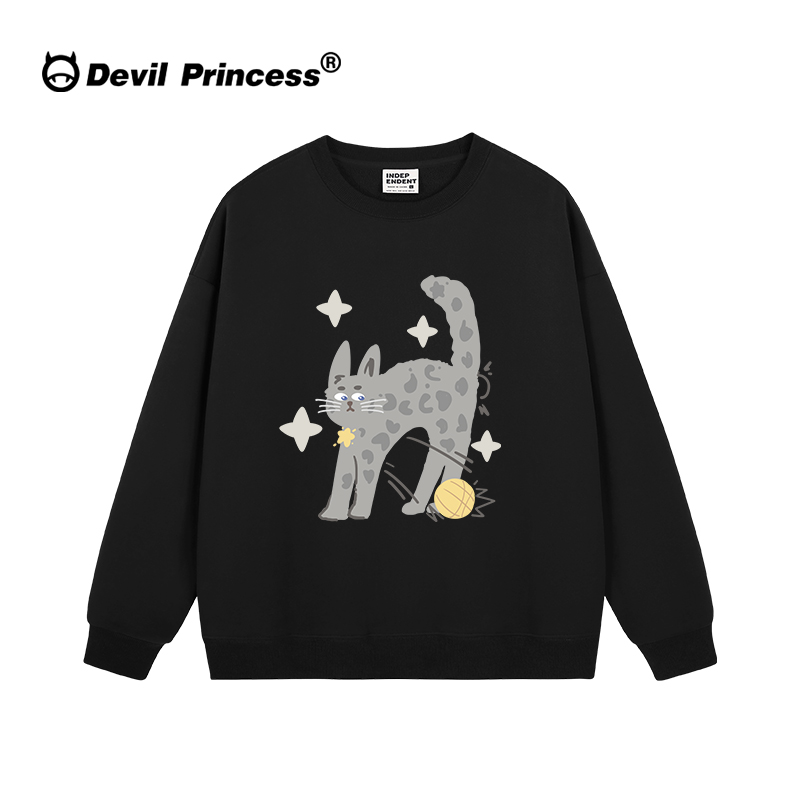 2025新款 黑色卫衣女超火ins风设计感卡通印花宽松显瘦卫衣女 薄款