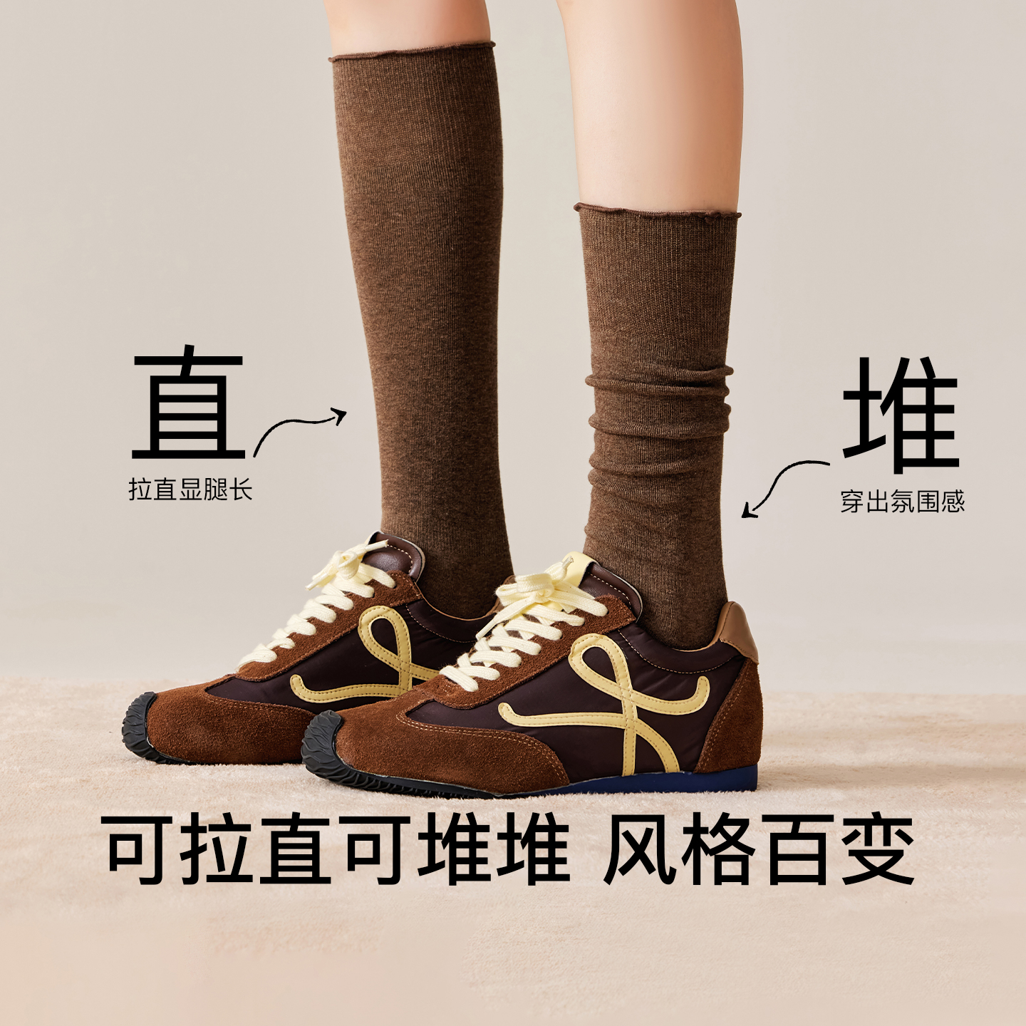 雅鹿过膝袜子女长筒袜秋冬款 长腿棉袜护膝袜套 加厚小腿袜长袜冬季