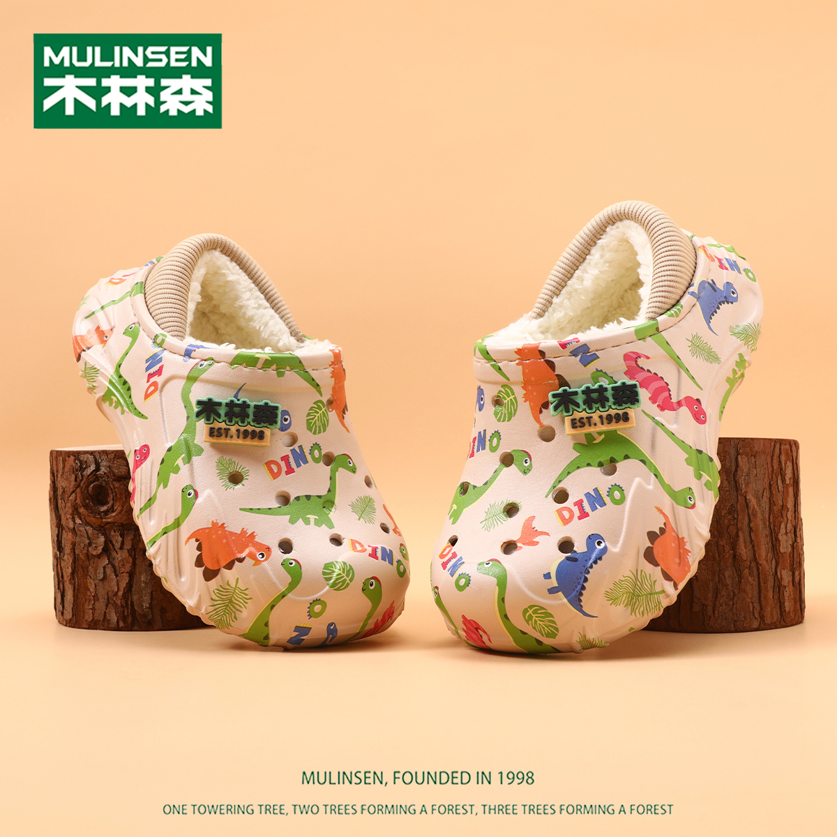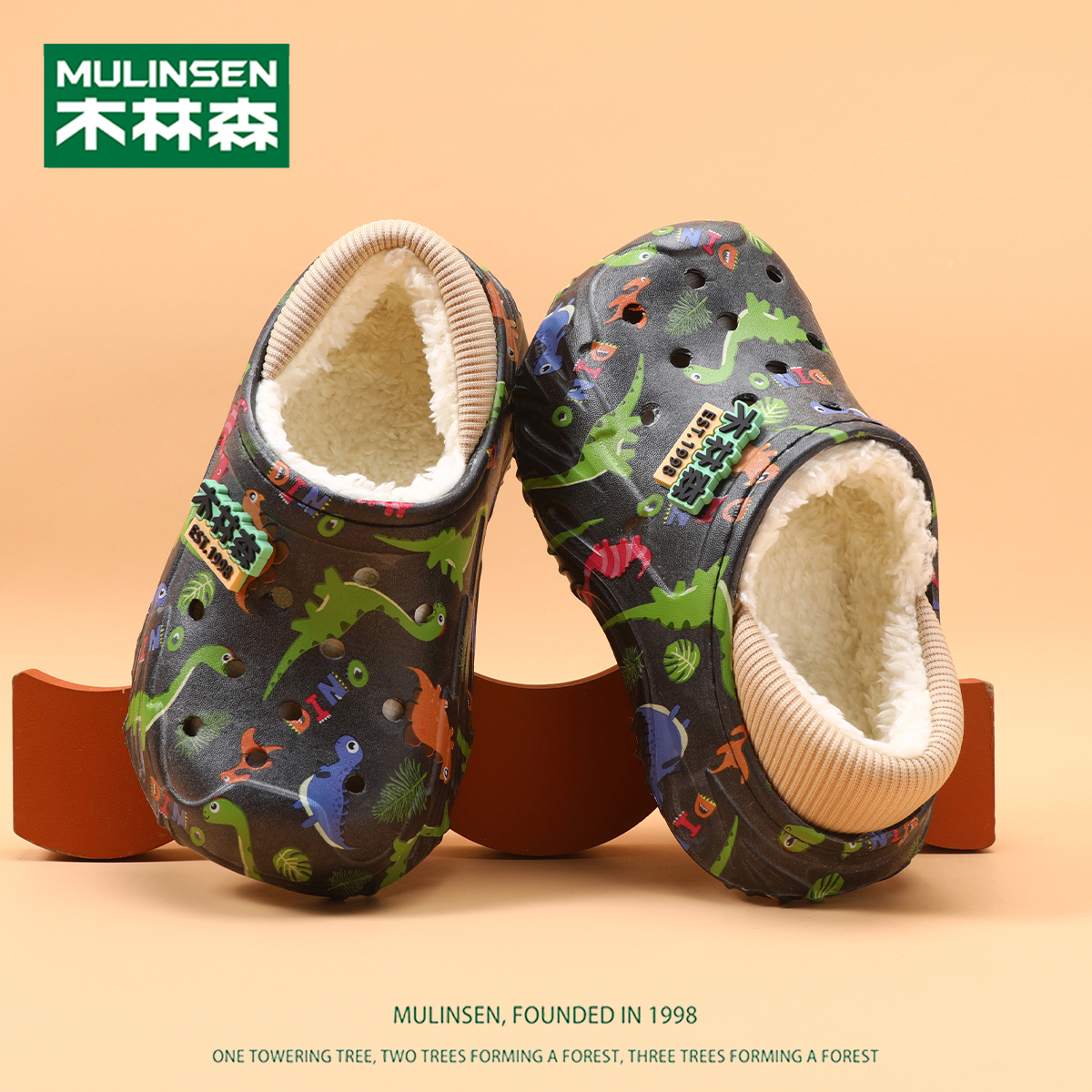 保暖防滑男童居家居轻便透气男孩洞洞鞋 木林森儿童棉拖鞋 秋冬新款