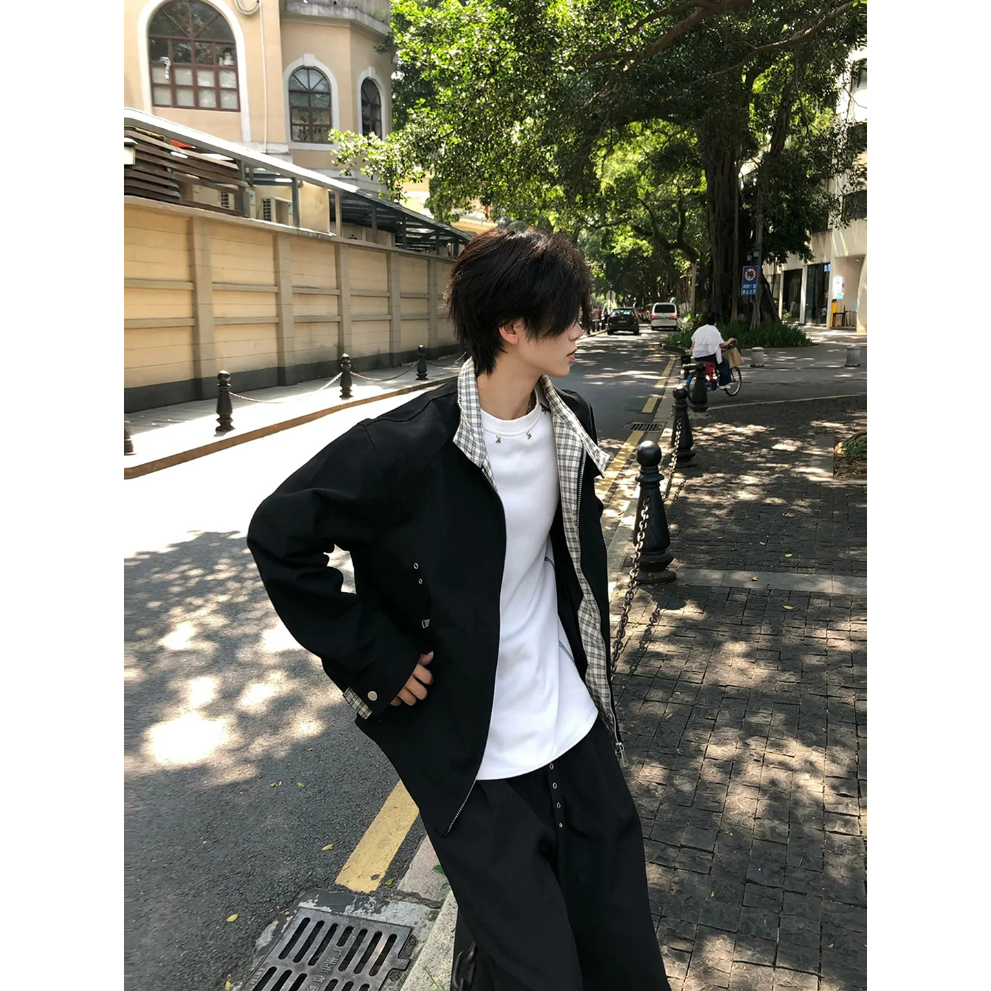 立领工装 美式 短款 秋季 外套重工水洗机车服 复古哈灵顿飞行夹克男款