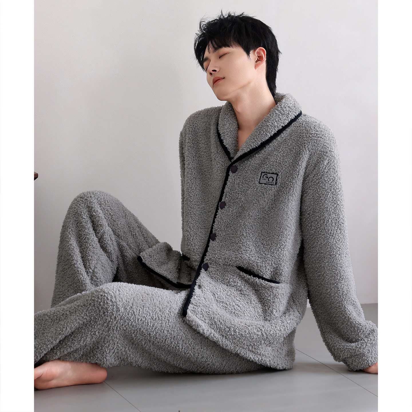冬款 睡衣男士 秋冬法兰绒加大码 珊瑚绒加厚加绒保暖男款 家居服 冬季
