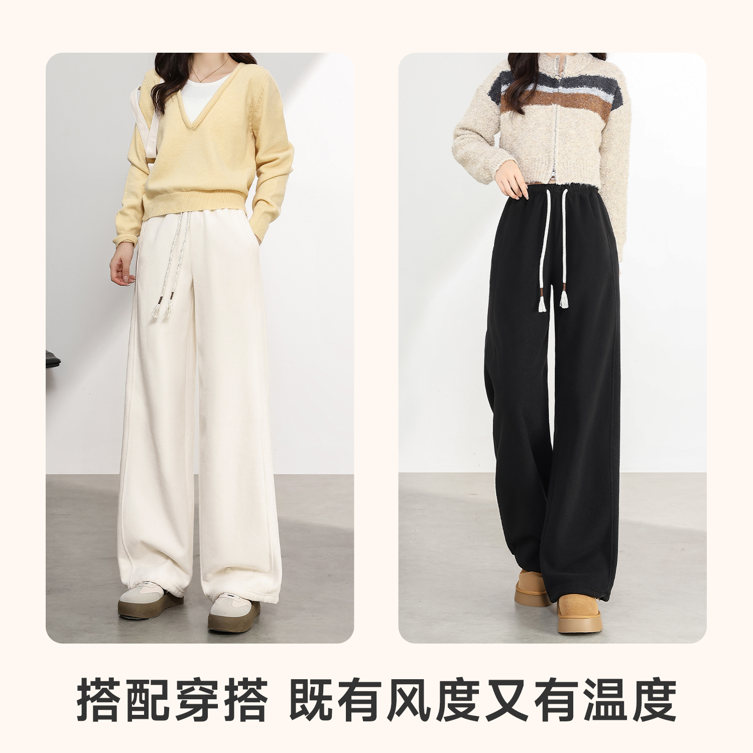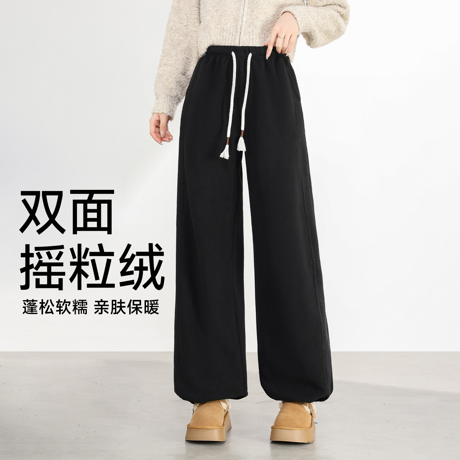 高级宽松bf慵懒垂感直筒加绒休闲阔腿裤 2025新款 子女春秋季 糯米裤