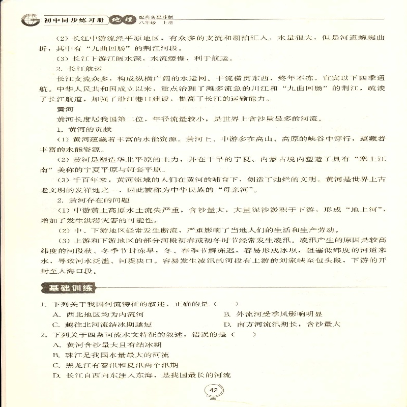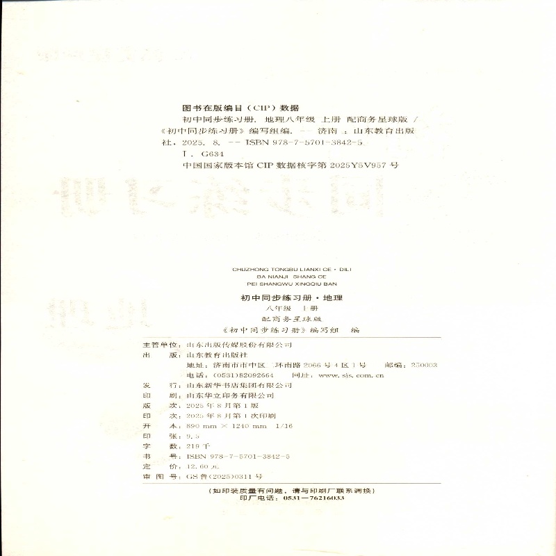 2025秋六三制初中同步练习册 地理8八年级上配商务星球版