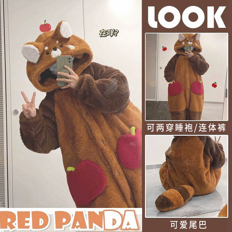 半边绒可爱加厚冬男士 有棵树睡衣女款 情侣家居服套装 成毅同款