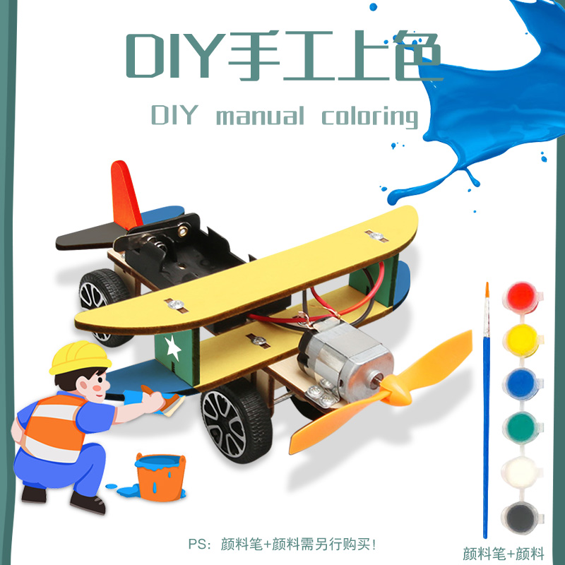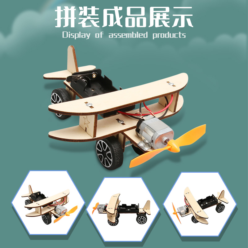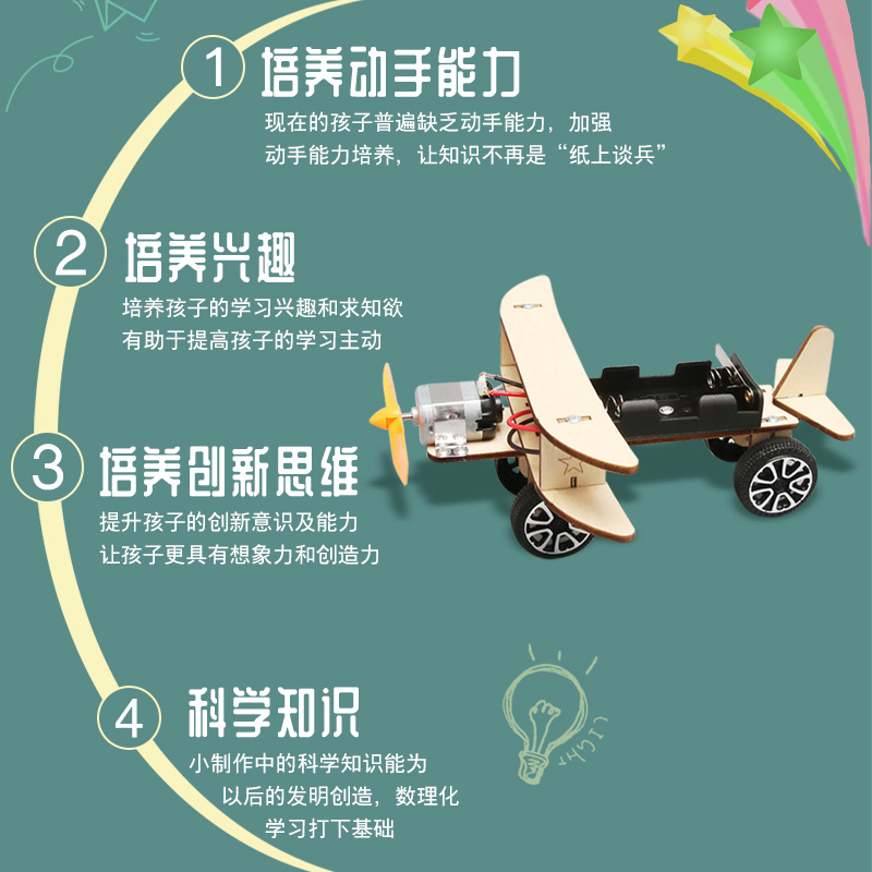 木质电动滑行飞机模型科技小制作学生科学实验手工发明教学材料
