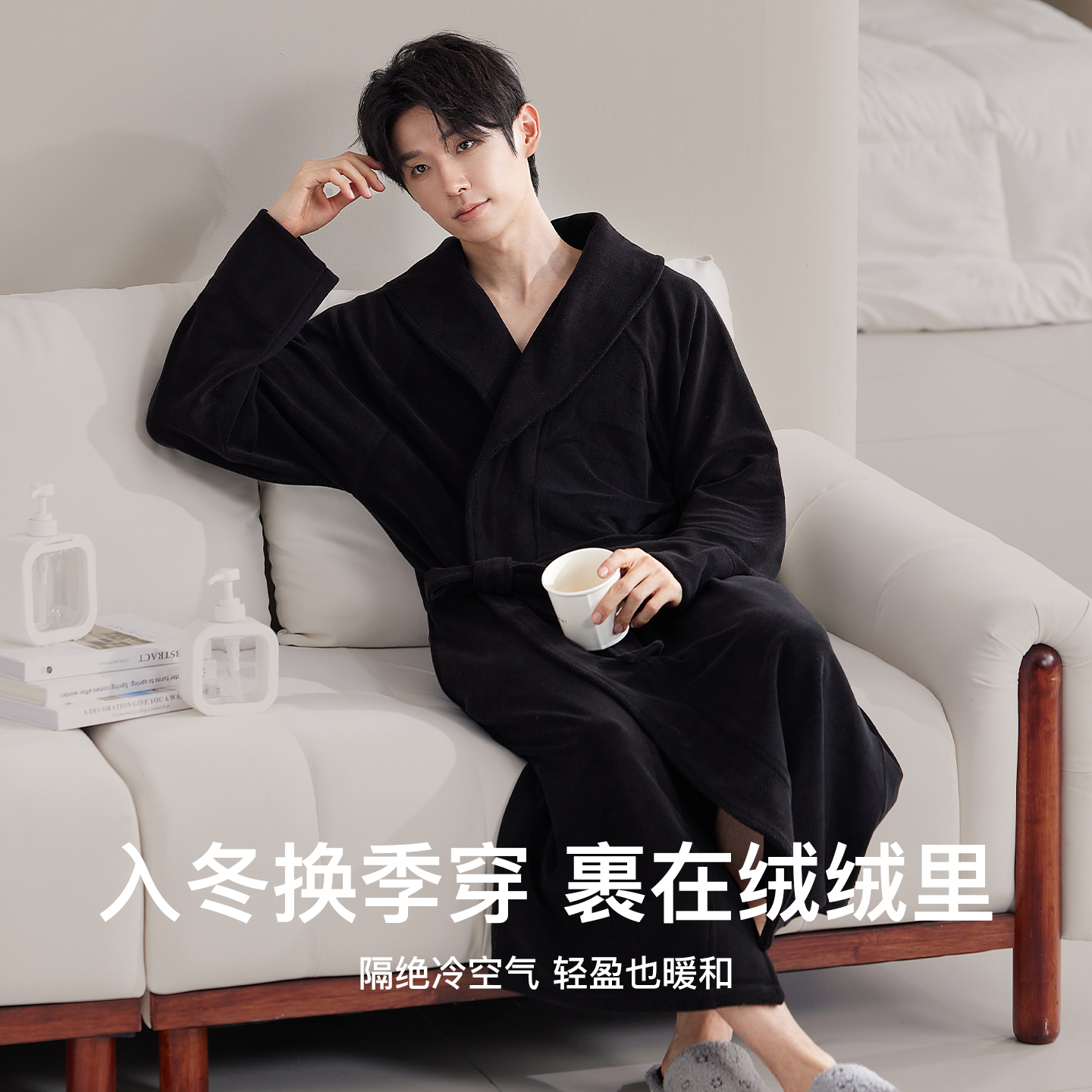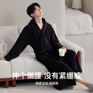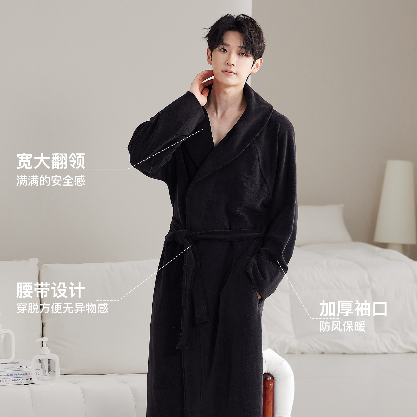 摇粒绒加绒加厚珊瑚绒长款 冬季 浴袍黑色高级感 睡衣秋冬款 睡袍男士