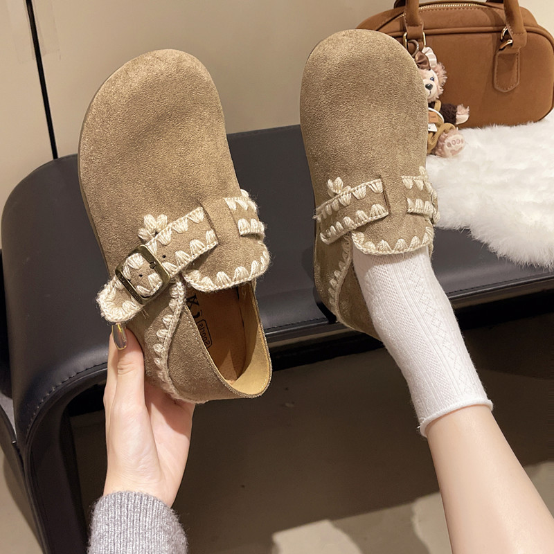 懒人一脚蹬两穿博肯单鞋 新款 女全包2025秋季 复古内增高厚底勃肯鞋