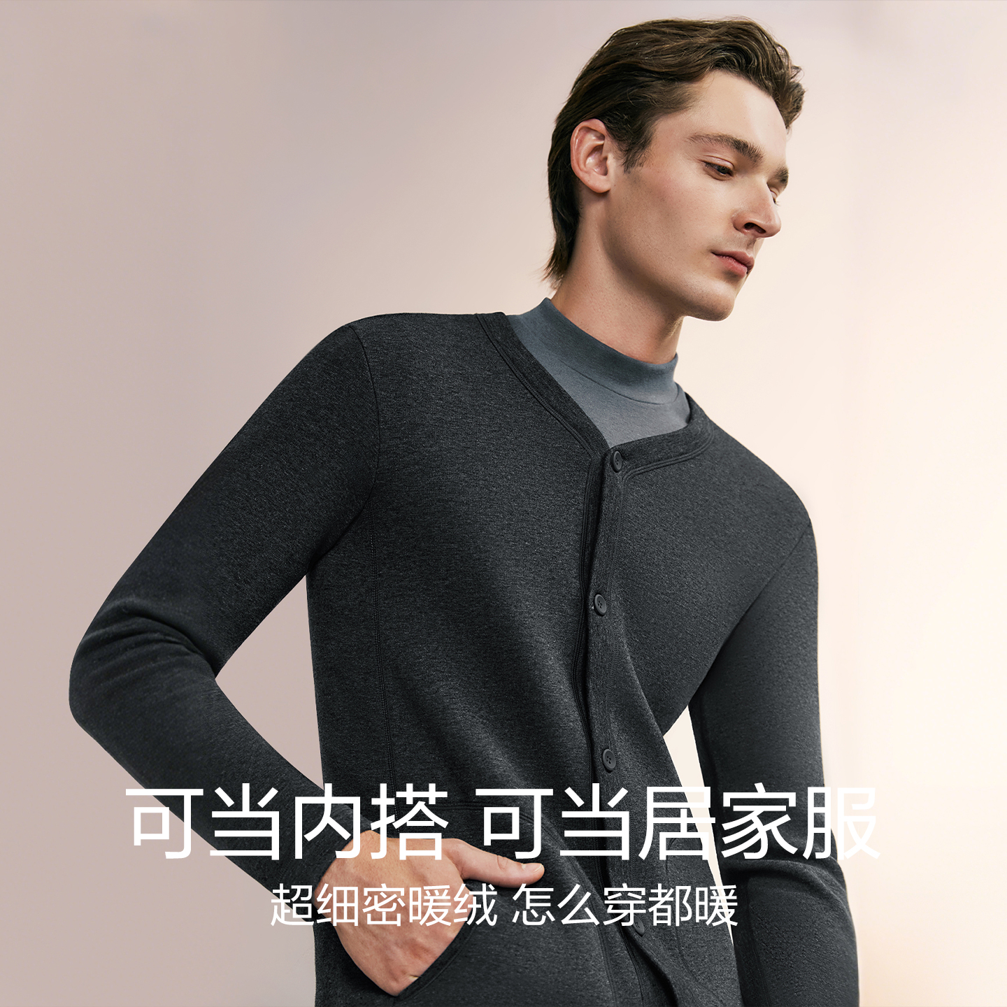 红豆男士 内搭抗静电 加绒保加厚暖背心抗静电开襟马甲A类色纺开衫