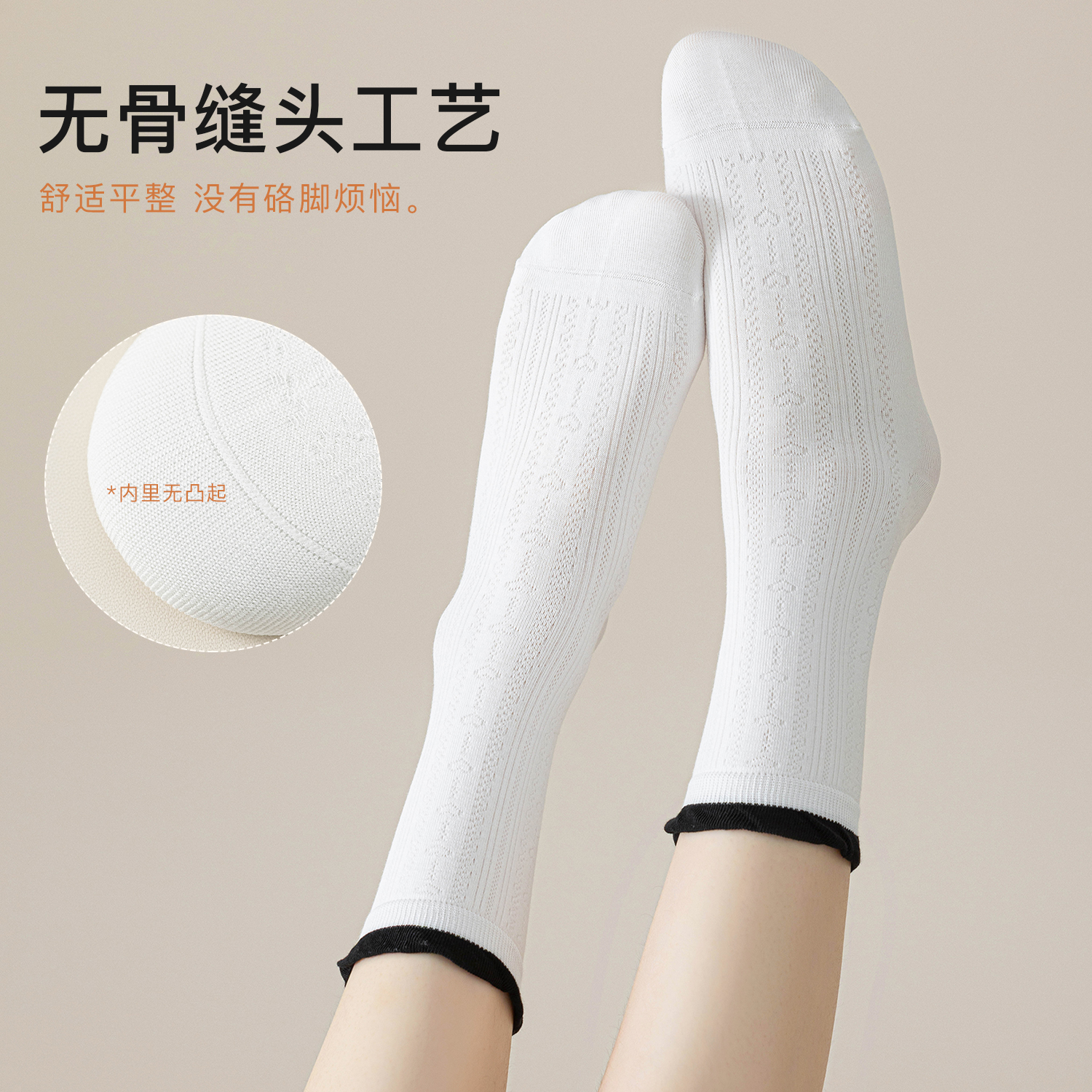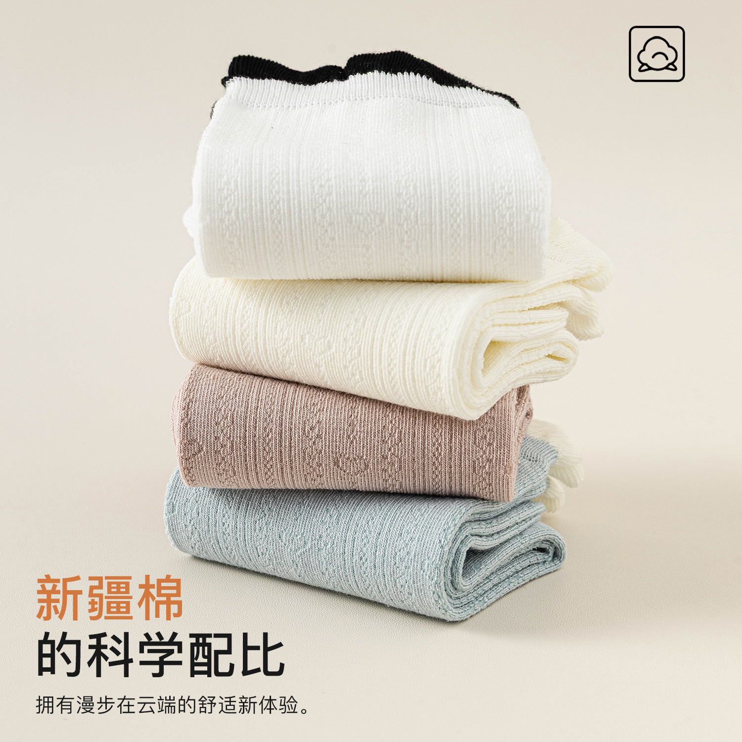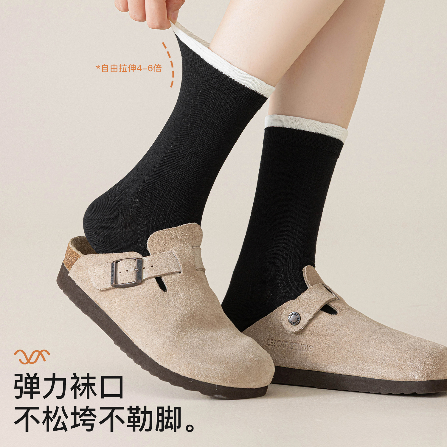 花边袜子女纯棉春秋中筒袜无骨拼接堆堆长筒棉袜搭配勃肯鞋 月子袜