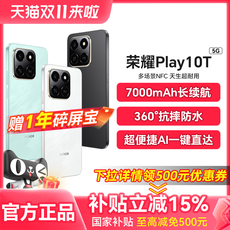 荣耀Play10T HONOR 智能手机长续航超抗摔便捷NFC安卓学生x老人机官方旗舰70国补手机 政府补贴15%
