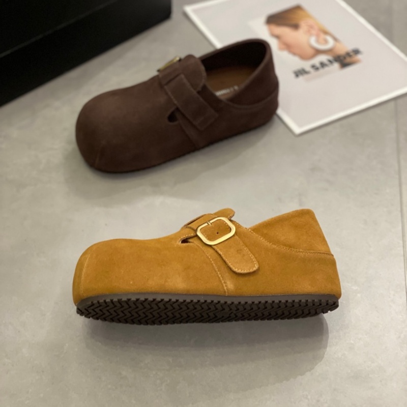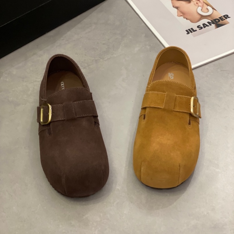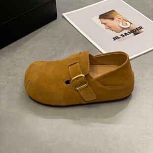 休闲百搭一脚蹬懒人休闲单鞋 秋季 潮 女2025新款 真皮圆头丑萌勃肯鞋