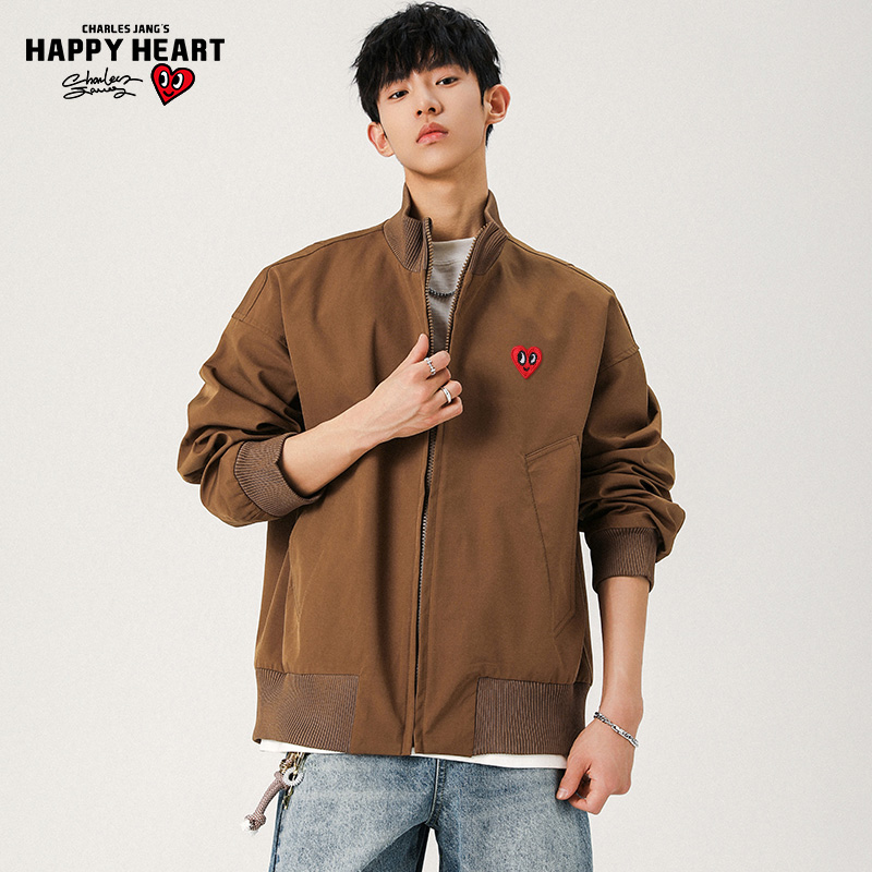 cleanfit棒球领飞行服外套 新款 查尔斯桃心美式 廓形立领夹克男秋季