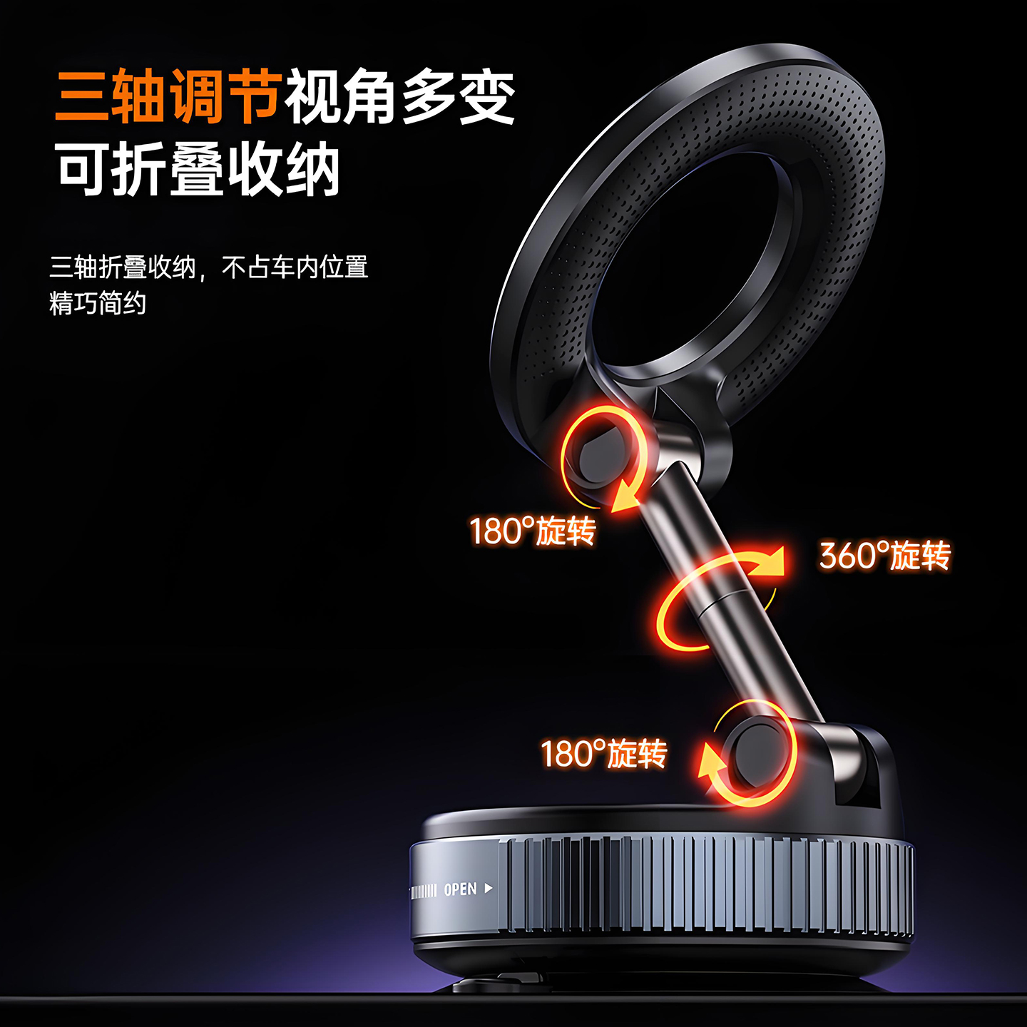 车载手机支架真空磁吸支架吸盘式 汽车中控台专用导航无线充支架
