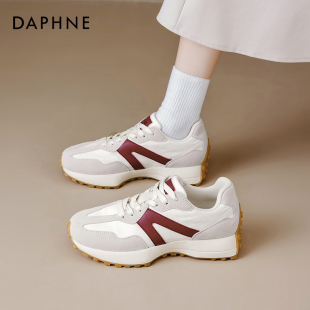 红色运动休闲阿甘鞋 德训鞋 百思图小彩糖25秋新款 女 张予曦同款