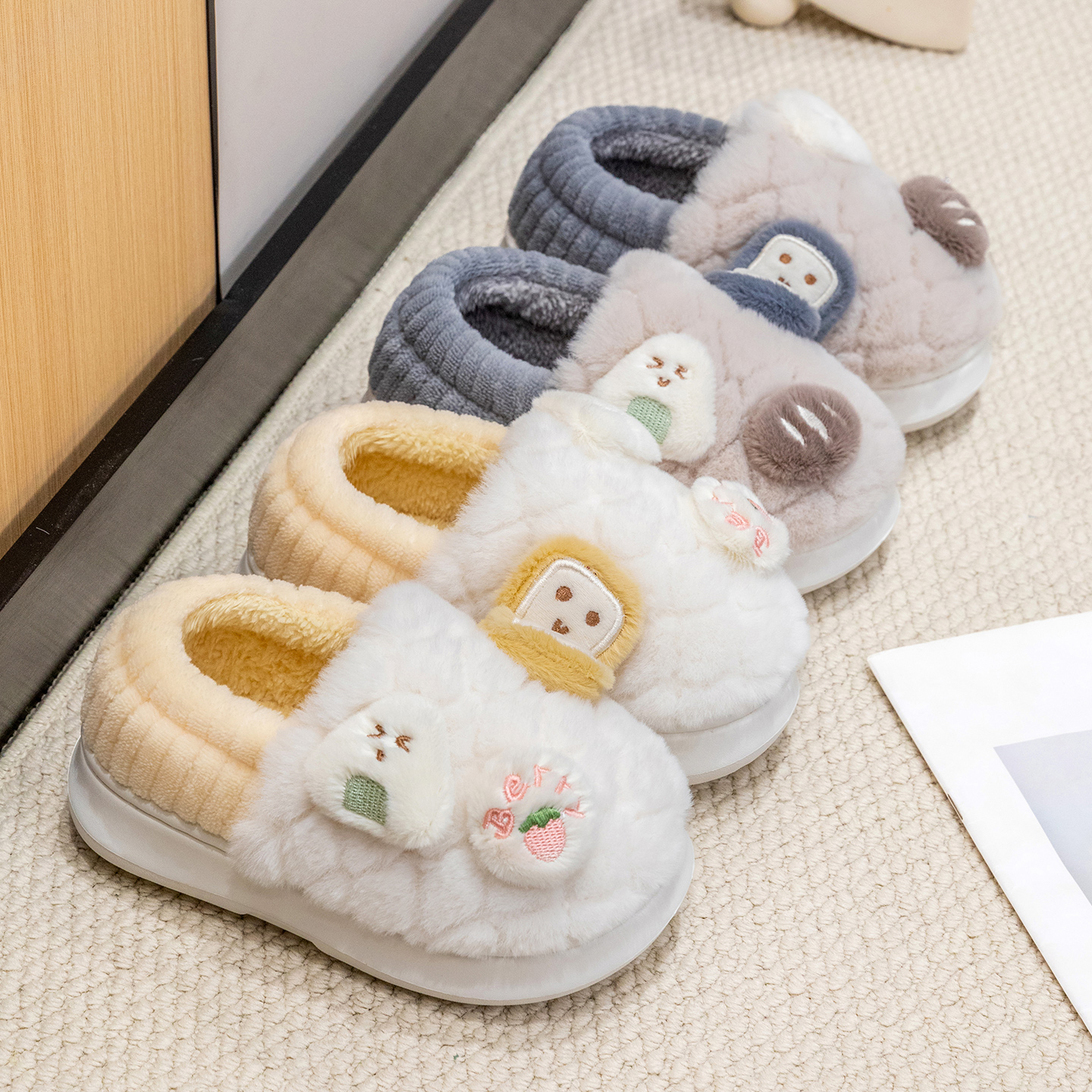男孩拖鞋 室内家居加绒包跟亲子棉鞋 男童秋冬天2025新款 儿童棉拖鞋
