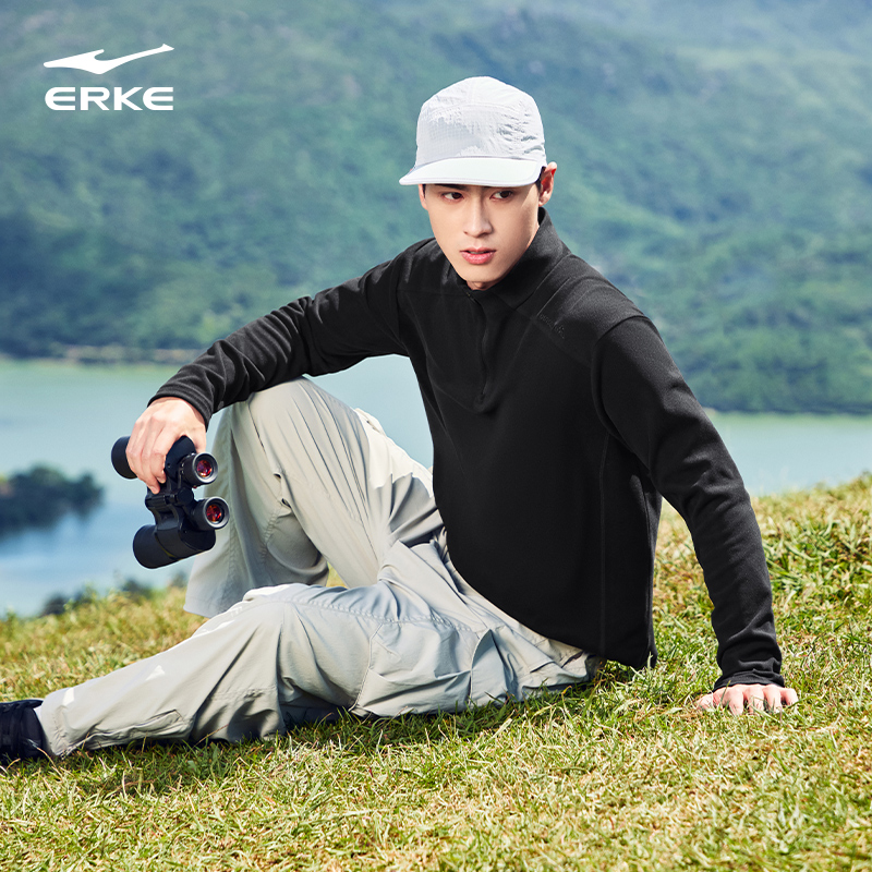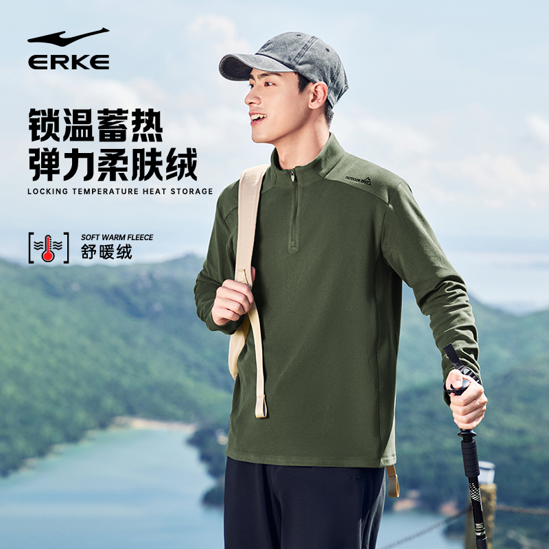 t恤加厚上衣 运动长袖 鸿星尔克半拉链加绒卫衣男2025秋冬新款 男士