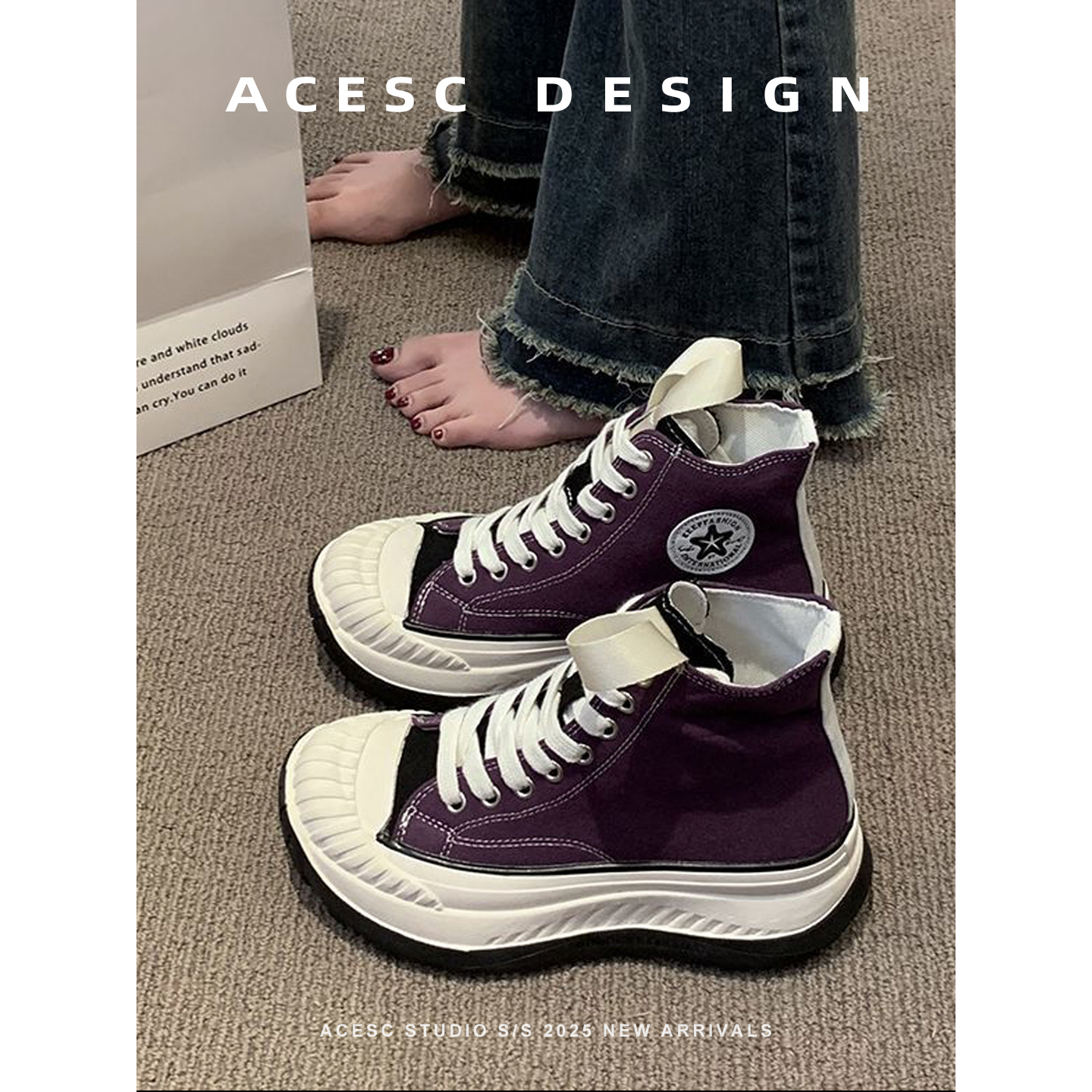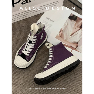 潮包头老爹鞋 厚底高帮帆布鞋 子ins潮鞋 学生百搭鞋 女2025秋冬新款