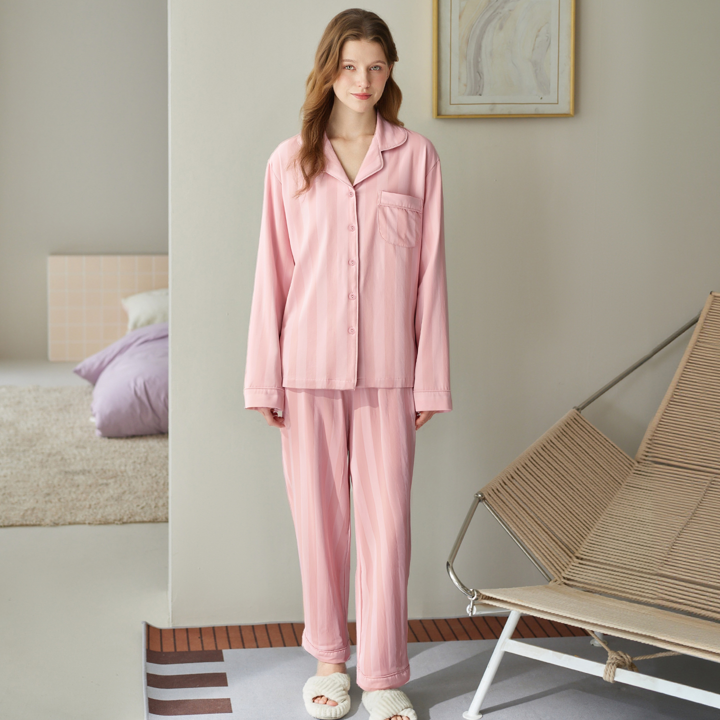 新款 休闲全棉家居服套装 纯棉条纹长袖 女款 长裤 芬腾女士睡衣春秋季