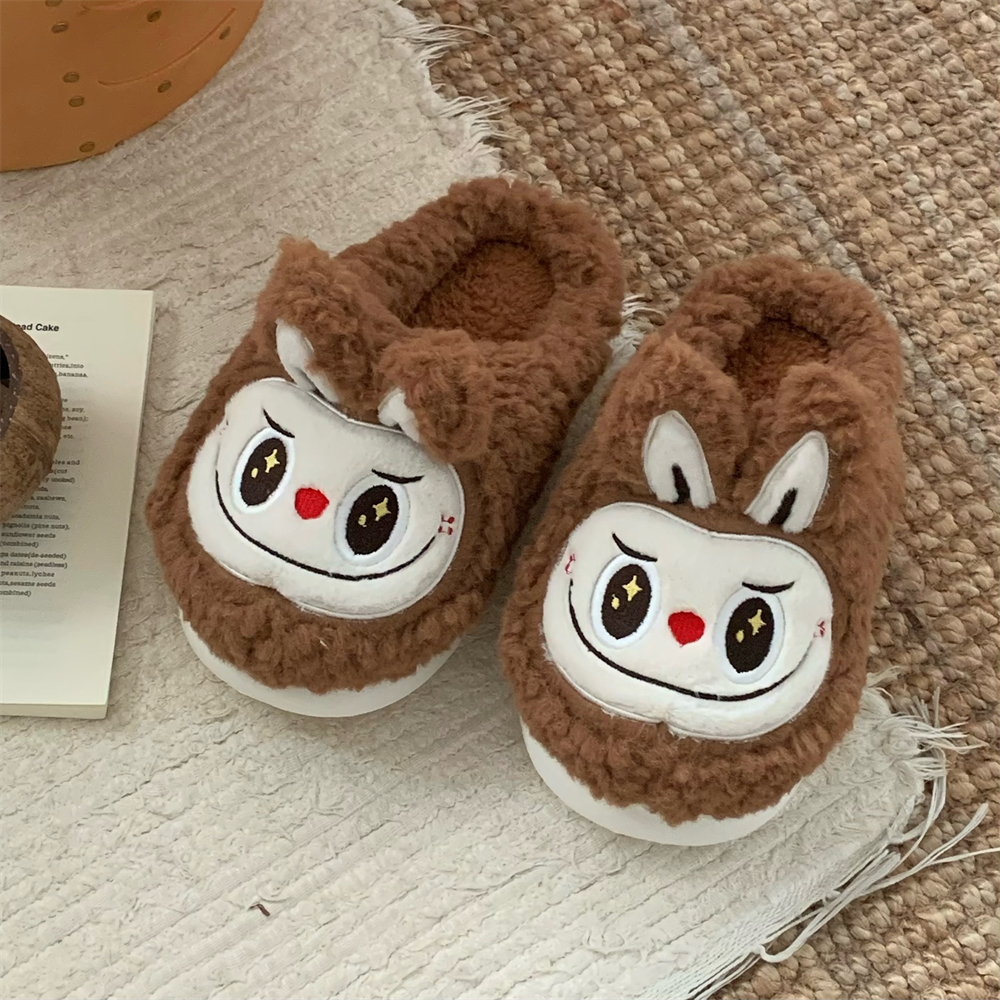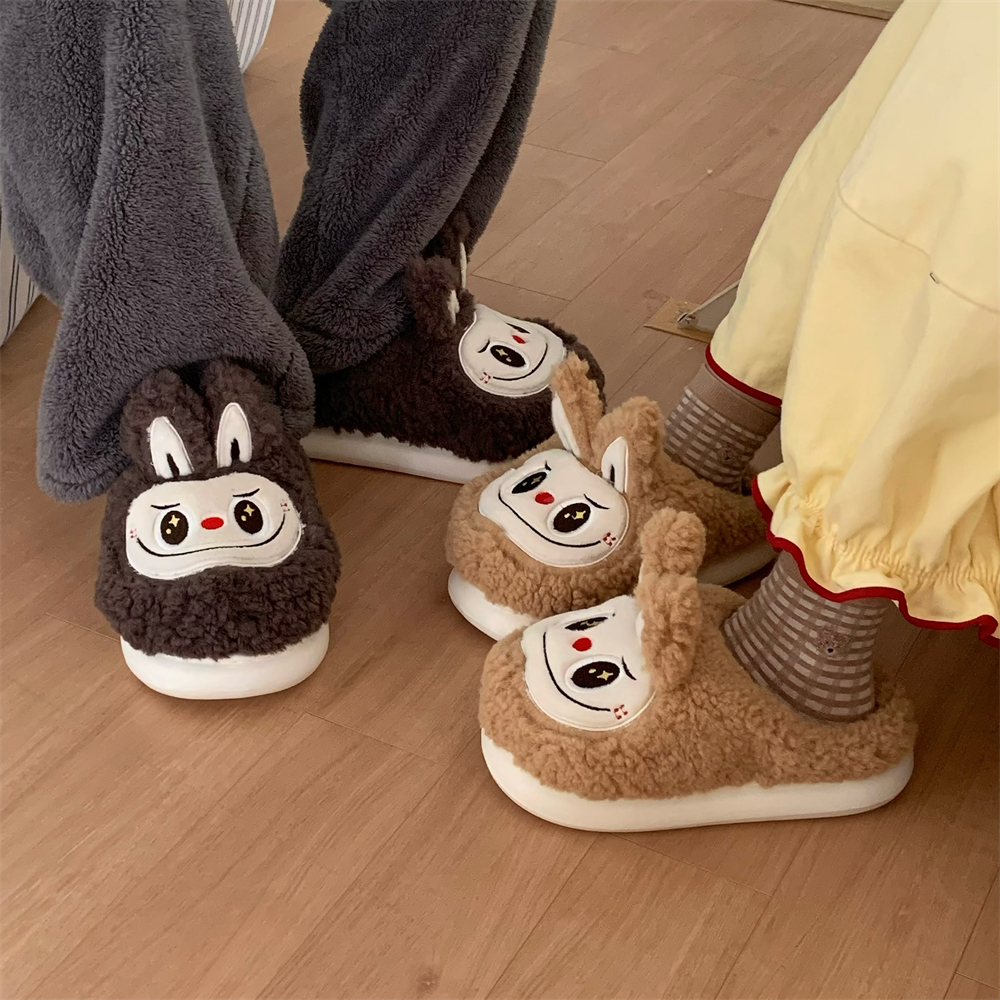 男女防滑居家情侣保暖毛毛鞋 可爱大眼睛小兔子棉拖鞋 新款 2025冬季