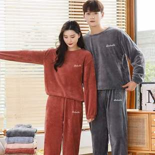 加厚大码 2025年新款 情侣家居服 珊瑚绒法兰绒暖暖套装 睡衣女秋冬季