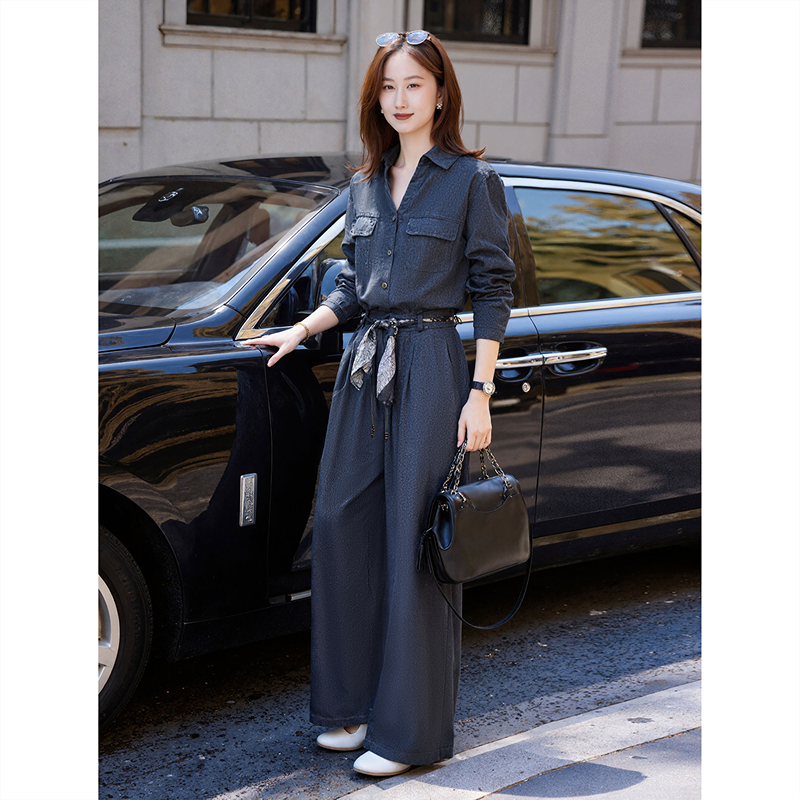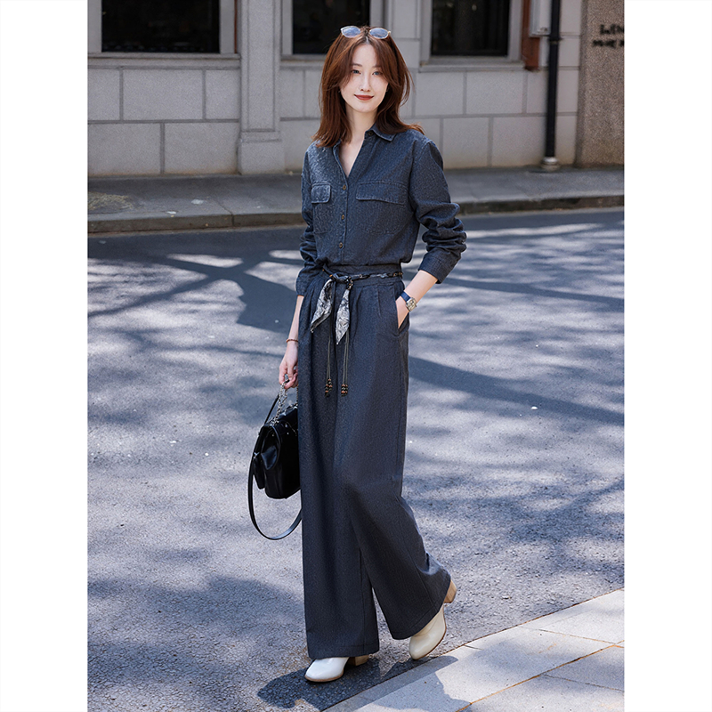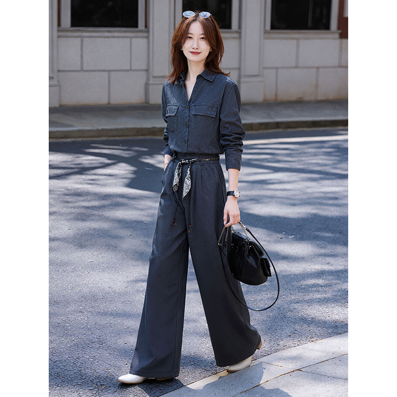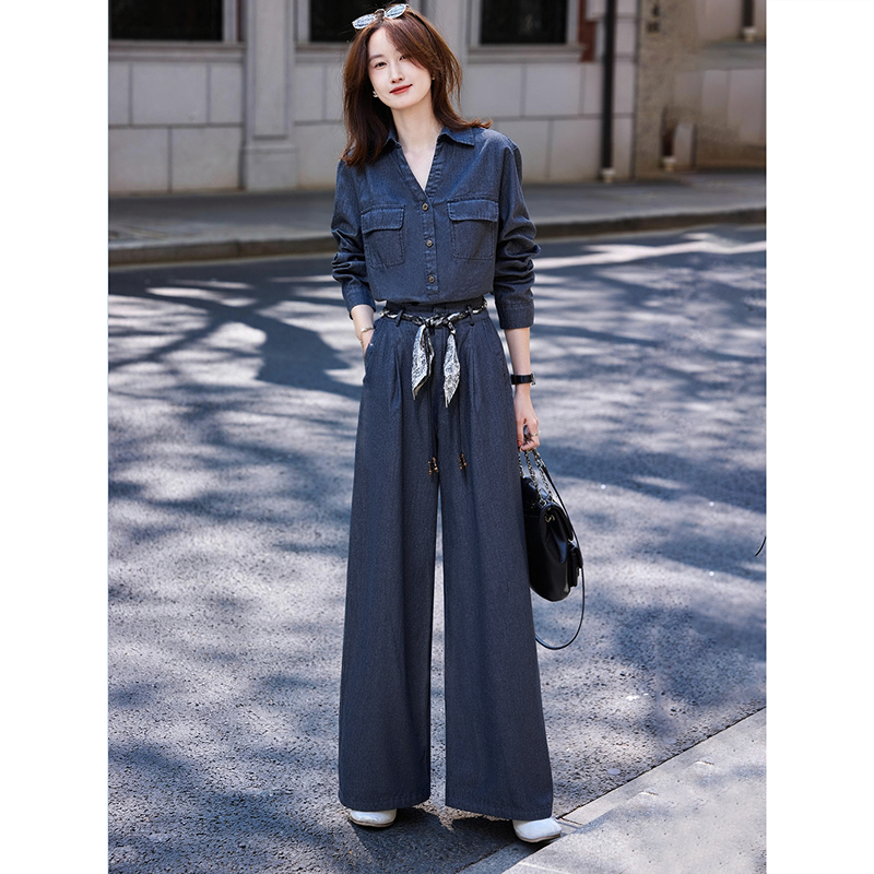 套装 气质淑女风2025年秋季 长裤 复古休闲牛仔衬衫 重工两件套 新款