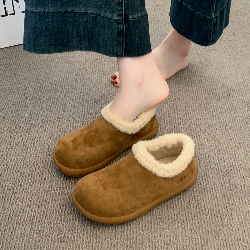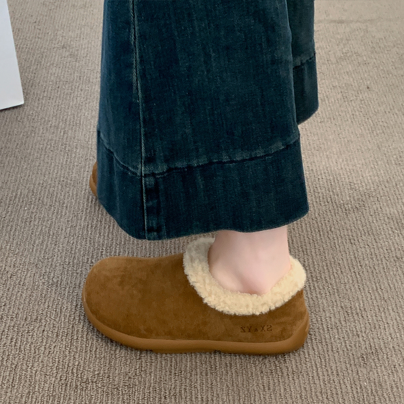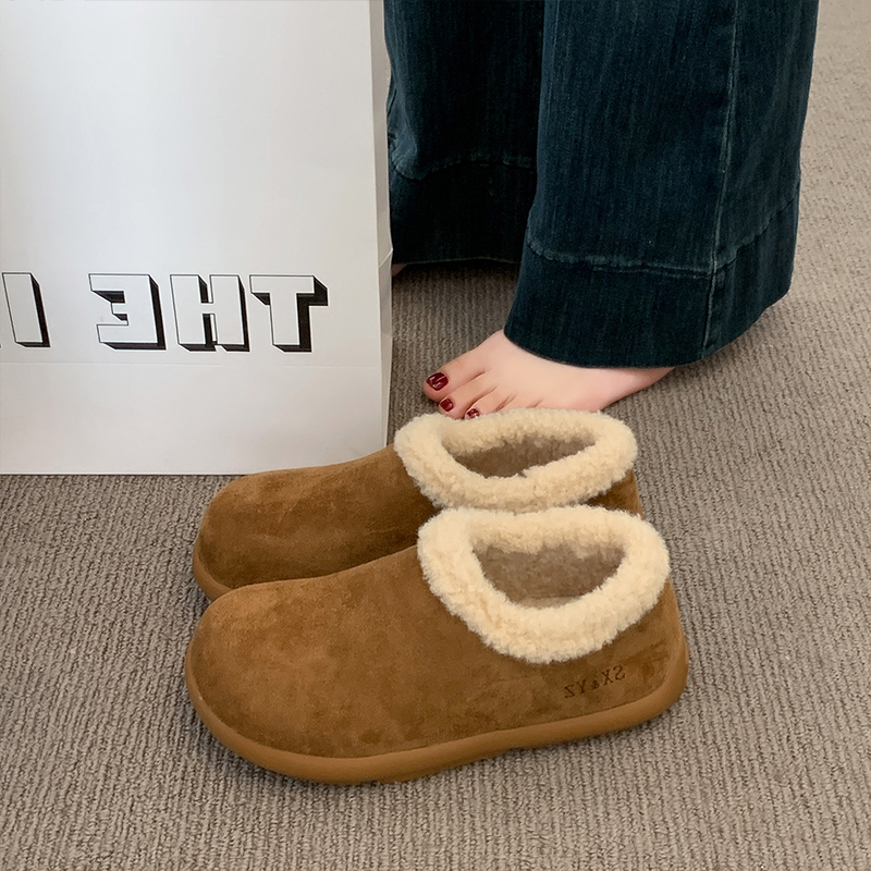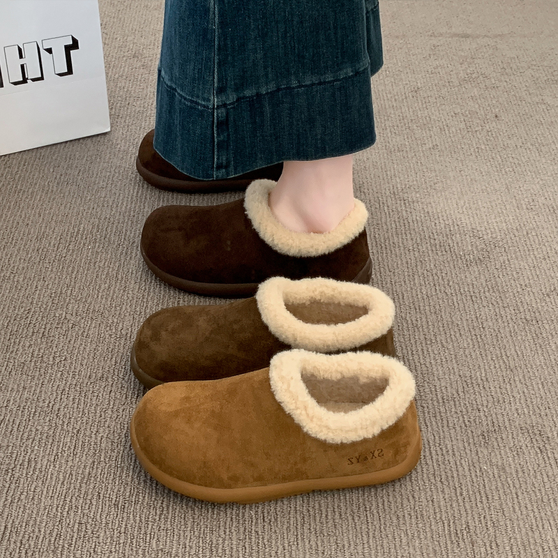 秋冬毛毛鞋 2025新款 一脚蹬雪地靴毛绒防水 女加绒保暖豆豆鞋 勃肯鞋