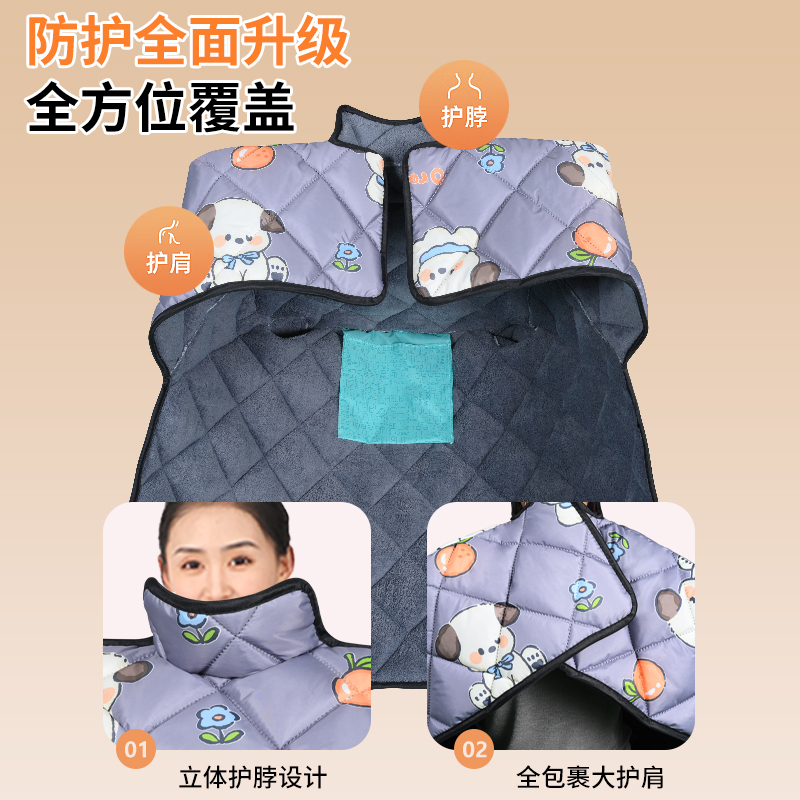 电动车挡风被冬季 电瓶摩托车通用双防水防风罩 加绒加厚全包斗篷式