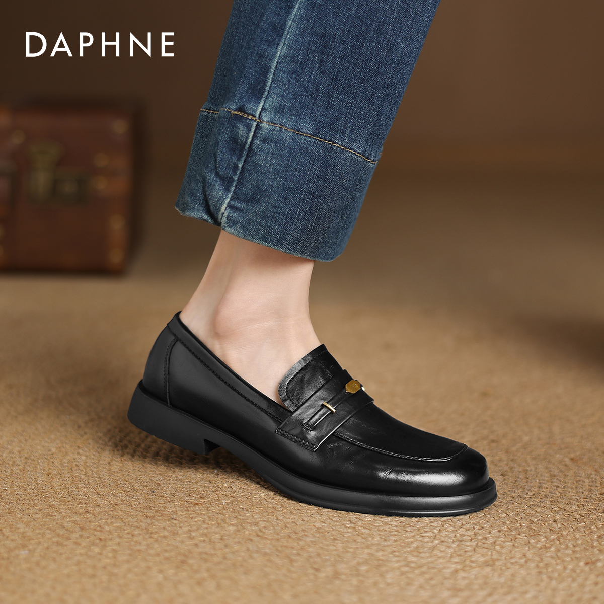 女2025秋季 软皮豆豆小皮鞋 新款 单鞋 百搭 平底夏季 达芙妮黑色乐福鞋