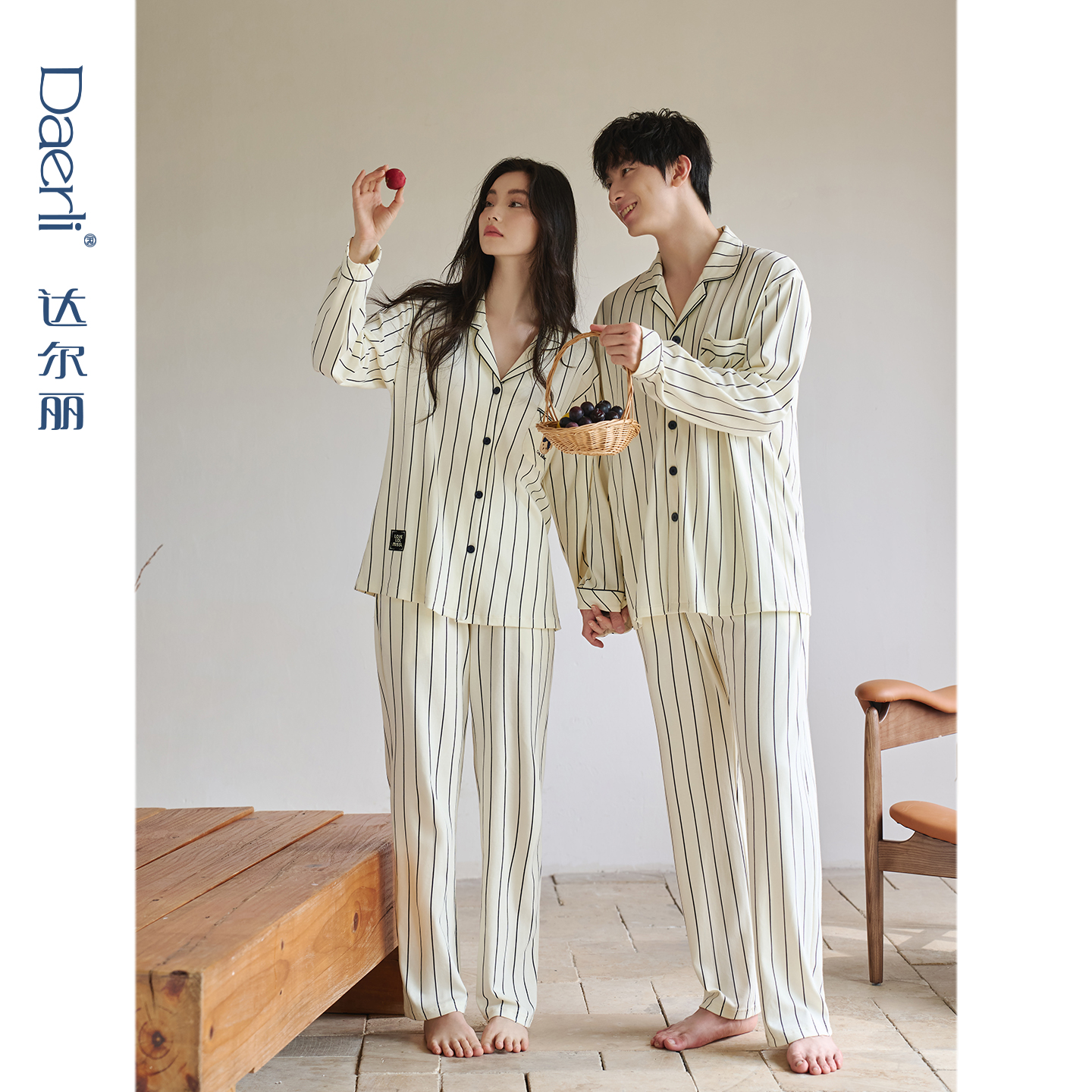 套装 宽松家居服休闲条纹男大码 柔软棉长袖 贝妍情侣睡衣女春秋新款