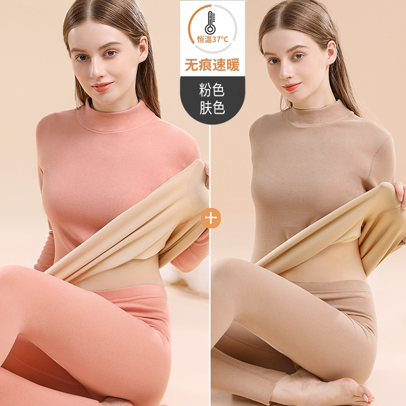 冬发热 纯棉无痕打底棉毛衫 保暖内衣女套装 德绒加厚加绒秋衣秋裤