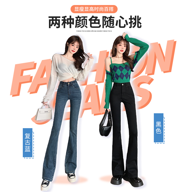 直筒喇叭裤 微喇叭弹力牛仔裤 显瘦显高修身 马蹄裤 黑色蓝色 女春秋季