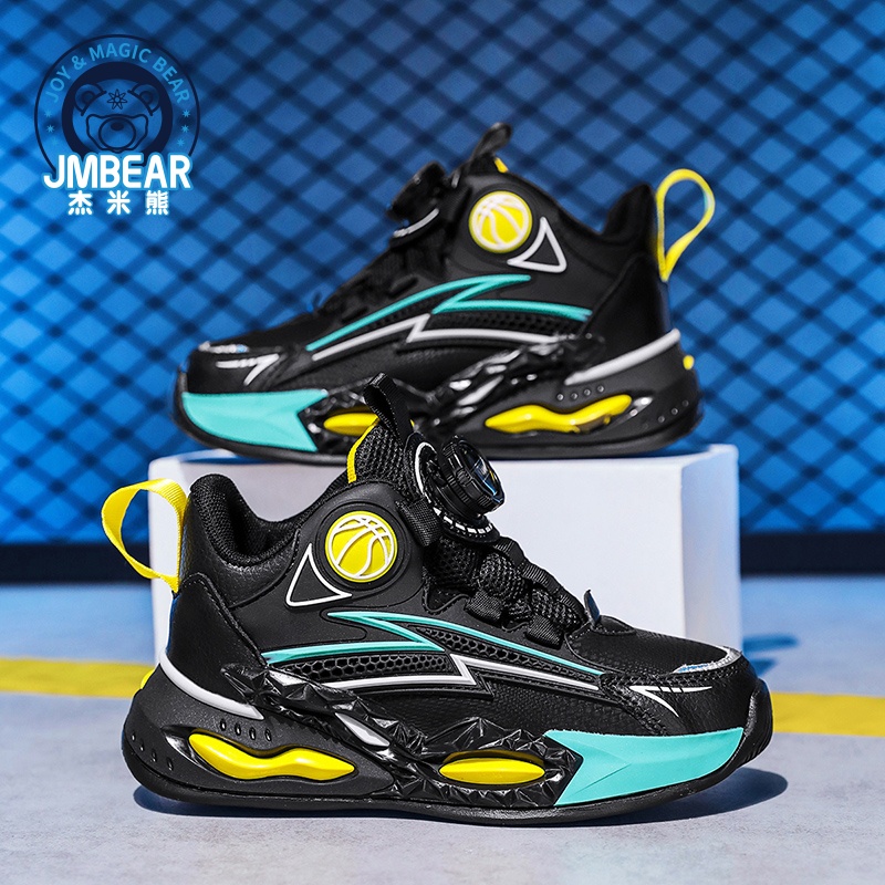 轻便透气跑鞋 杰米熊童鞋 网面男童休闲纽扣运动鞋 新款 男孩 2025秋季