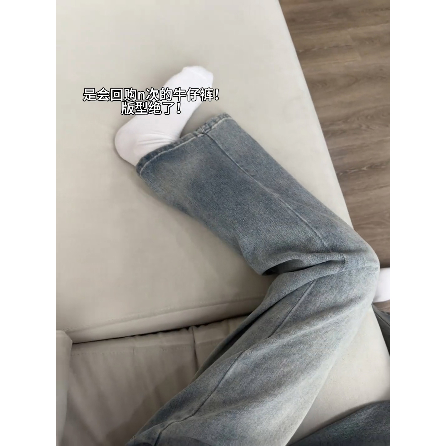 女2025秋季 长裤 新款 复古时尚 百搭显瘦牛仔裤 王家有鱼不贴腿微喇裤