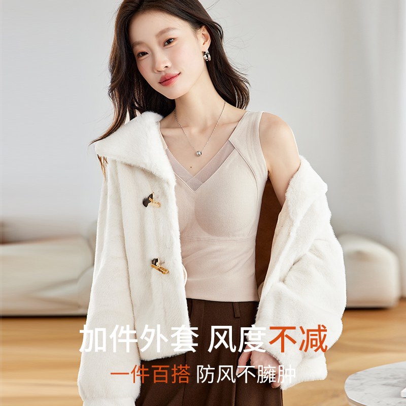 保暖背心女士秋冬内搭带胸垫2025新款 遮副乳加绒加厚吊带打底上衣