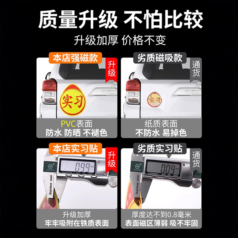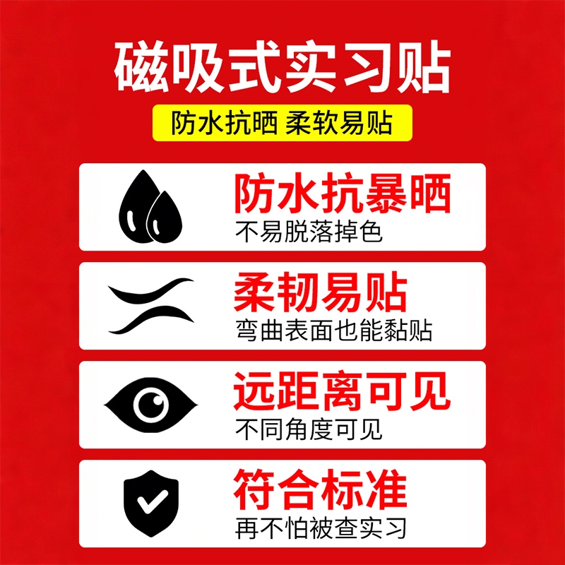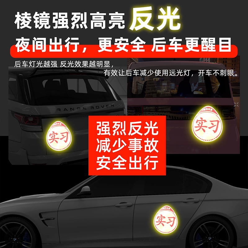 实习车贴新手上路反光磁贴汽车贴纸创意实习期专用磁吸标志好磁吸