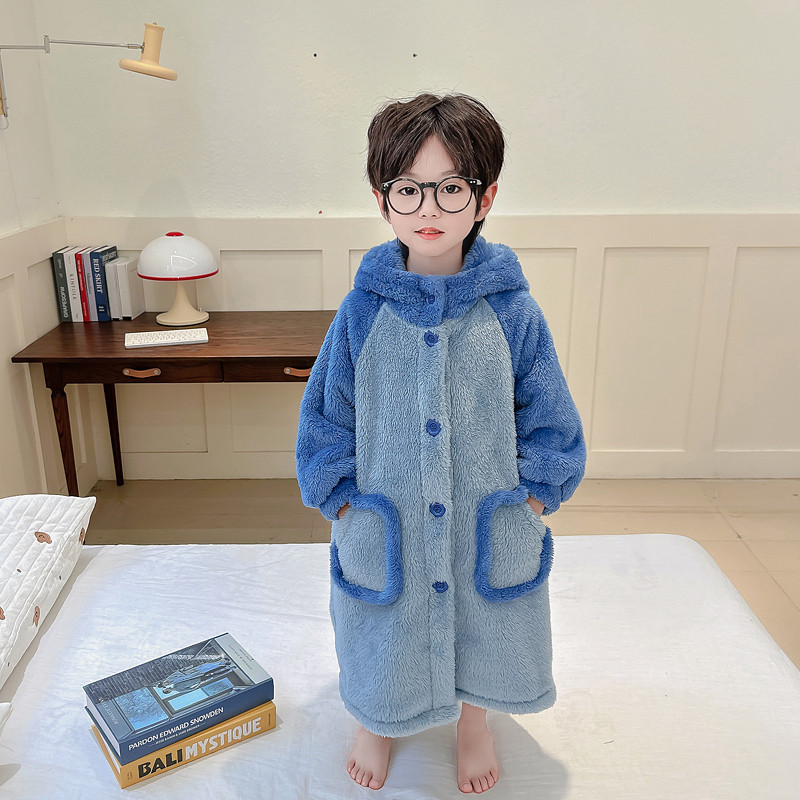 男童睡衣冬季 加厚睡袍儿童珊瑚绒卡通连帽家居袍男孩保暖浴袍秋冬
