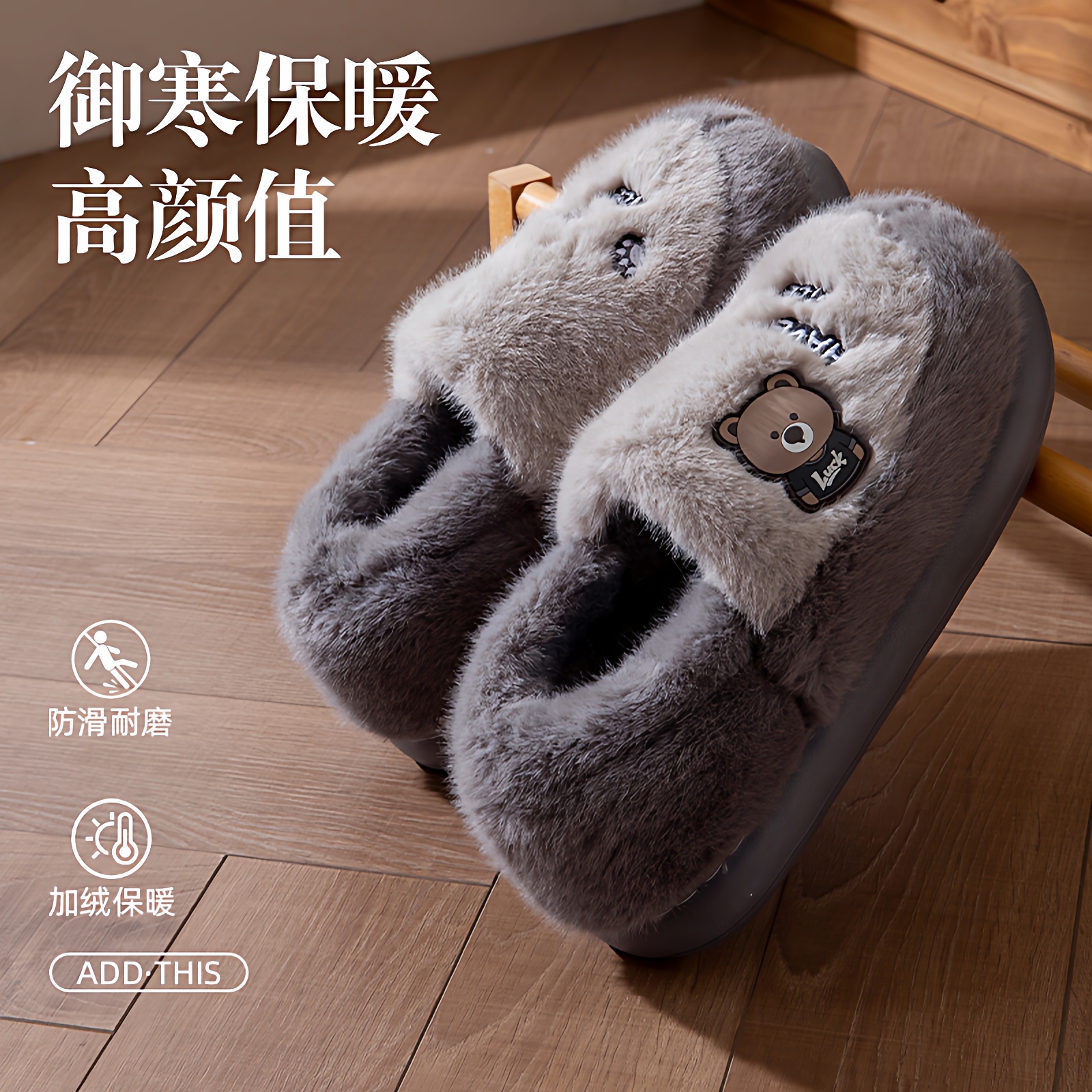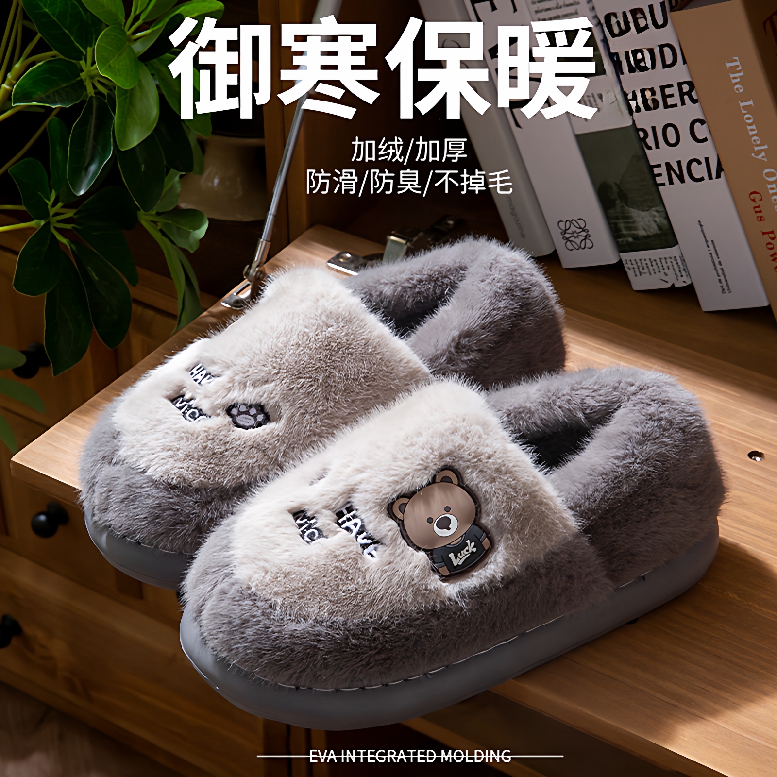 家居室内防滑毛绒保暖可爱外穿包跟棉鞋 棉拖鞋 冬季 2025新款 女 男款