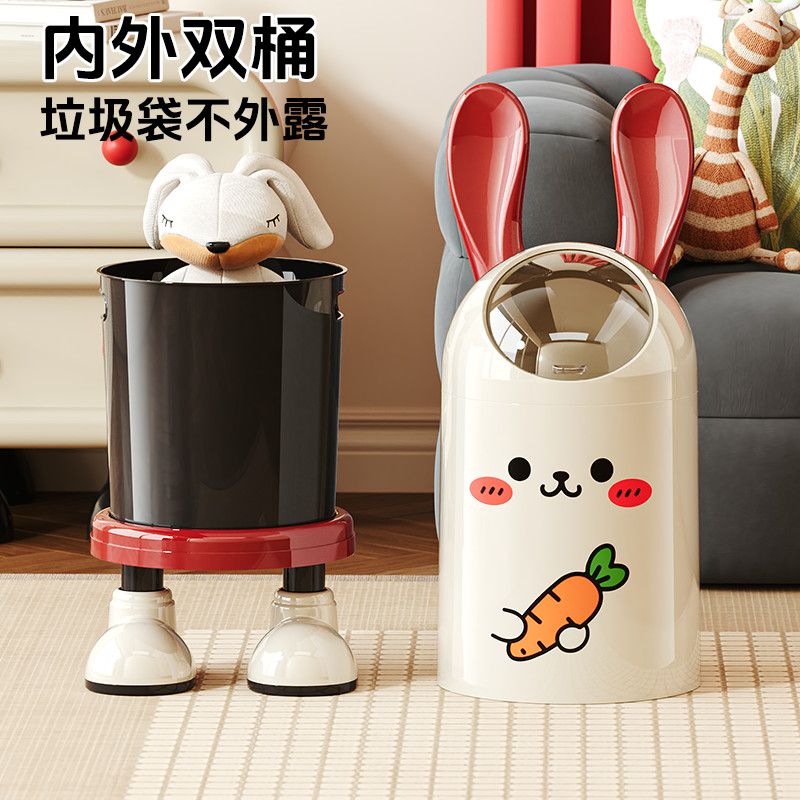 站脚垃圾桶家用高颜值可爱卡通大容量带盖密封客厅卧室创意纸篓桶
