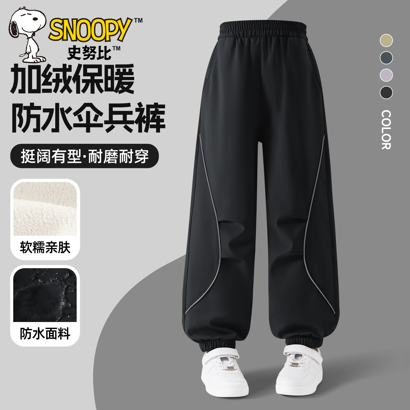 冬款 子2025新款 防水长裤 加绒加厚冬装 史努比男童冬季 儿童伞兵裤 裤