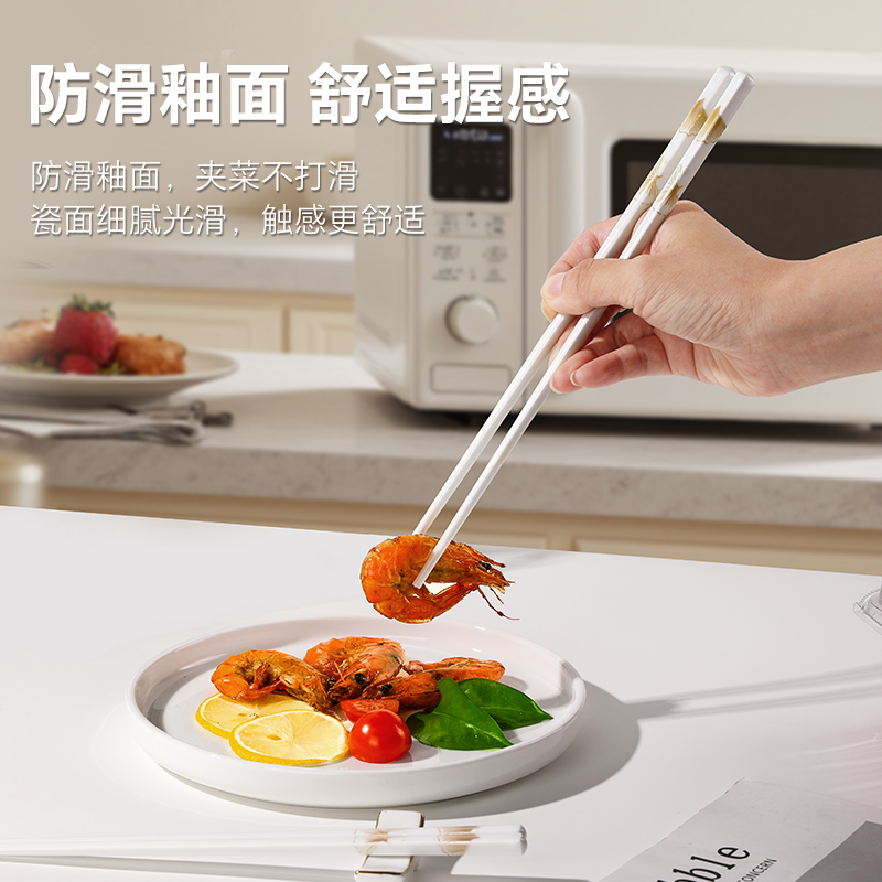 景德镇陶瓷筷子家用高档抗菌防霉轻奢高级感防滑耐高温健康易清洗