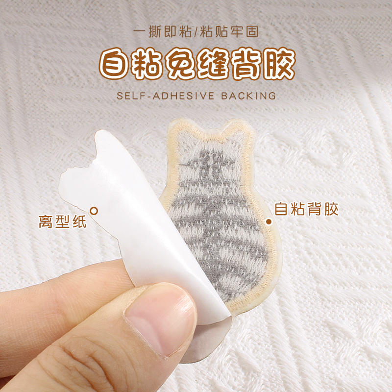 小猫刺绣补丁贴自粘免缝羽绒服衣服包包修补贴高端可水洗可爱布贴