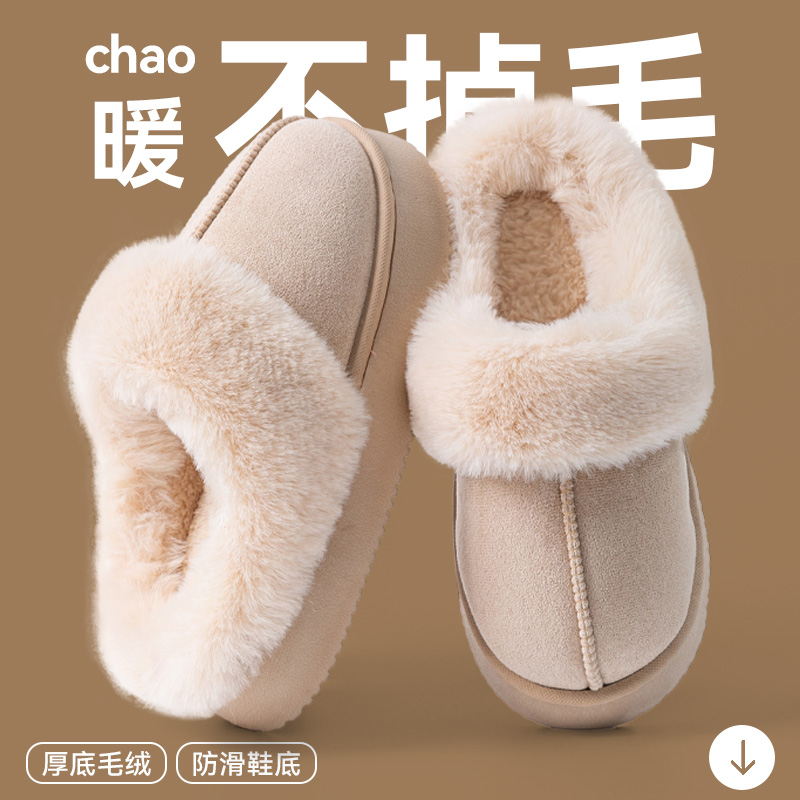 毛毛加绒保暖防滑棉拖外穿 室内家居秋冬季 厚底棉拖鞋 女士2025新款